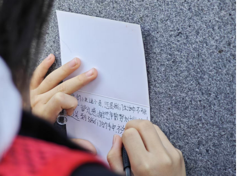 最暖人心扉的,当属儿童青少年志愿者与留深坚守岗位的快递外卖人员的互动。孩子们亲手制作了精美的新春贺卡,贺卡上面写满了真挚的话语。当看到快递员和外卖员时,志愿者立刻迎上去,双手递上贺卡,笑着说:“叔叔阿姨,新年好!感谢你们的付出!请接受我的新春祝福!”一位快递小哥腼腆地说:“谢谢你们,我感受到了孩子发自内心的祝福,真没想到能收到这样的惊喜,心里暖乎乎的!” 一位外卖员阿姨激动地连声道谢,脸上绽放出灿烂的笑容,对着贺卡上的内容看了又看,眼中满是感动。这些奔波忙碌的身影,在这一刻,被浓浓的温情包围。