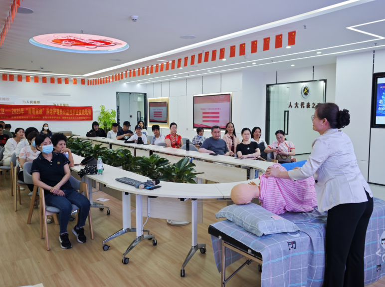 罗湖家园网讯:为贯彻落实“百千万工程”发展要求,促进社区居民健康管理服务提质增效,提升居民的养老护理技能水平,近日,老围社区党委、老围社区党群服务中心携手深圳市新现代社工服务中心、深圳市养老护理院、深圳市福田区仁人职业培训中心共同举办了养老护理员公益性职业技能培训活动,吸引了众多社区居民踊跃参与。