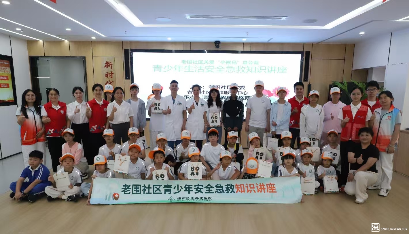 罗湖家园网讯:近日,老围社区党委携手社区党群服务中心、新现代社工服务中心、深圳博爱曙光医院,为 30 位来自江西姚圩的小候鸟们量身打造了一场青少年安全急救知识讲座。在专业医师的悉心指导下,孩子们开启了一段集理论讲解与实践操作为一体的安全防护学习之旅。