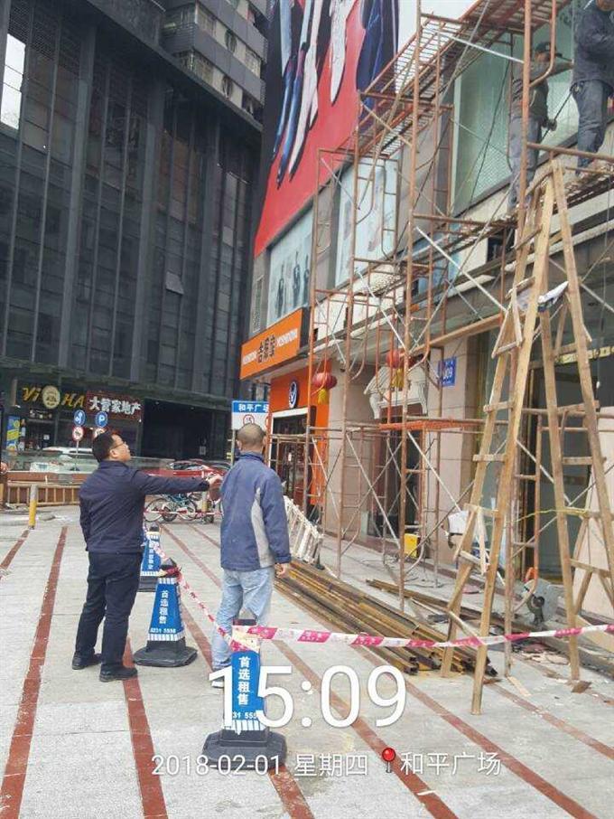 为有效防范春节前各类生产安全事故能最大限度地预防和降低伤害事故,人民桥社区对辖区内正在施工的建筑开展安全生产巡查活动。桂园街道党工委委员、人民桥社区第一书记洪福生,桂园街道综合部主任科员修亮在我社区党委书记的陪同下一同来到和平广场,巡查中发现正在施工的工人未按照相关规定佩戴安全帽及安全防护措施,立即要求责令整改,并对其进行批评教育。
