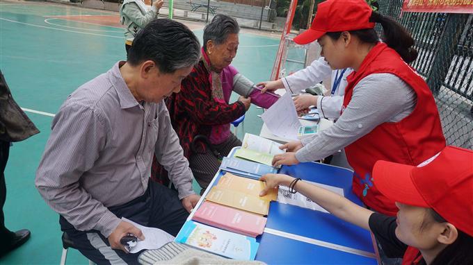 活动中有血压测量、眼部检查、针灸治疗、以及社工宣传的摊位,现场居民不惧人多纷纷排队参与其中,一个一个的检查这些项目,并听取医生对自己身体的意见。其中有居民说社区开展这些活动,对他们来说真的是非常好的福利。