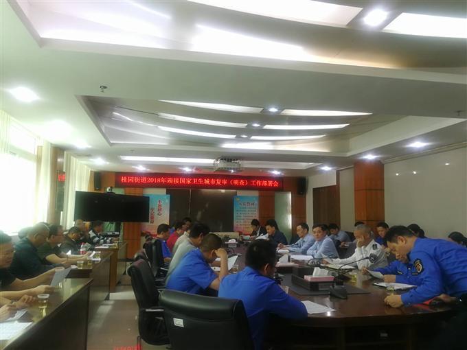 2018年3月29日上午,我社区党委书记、工作站站长和副站长参加“桂园街道2018年迎接国家卫生城市复审(明检)工作部署会”。