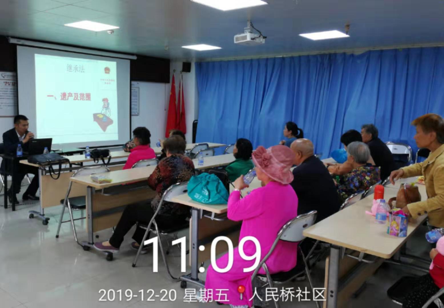 讯:2019年12月20日上午,人民桥社区驻点律师在人民桥社区工作站为居民讲解法律知识。