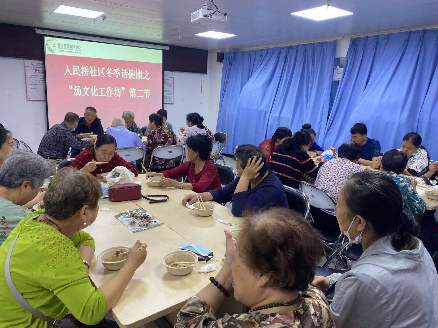 罗湖家园网讯:2020.11.25下午在人民桥社区党委大力支持下,人民桥社区党群服务中心以“冬季话健康之汤文化”为主题的工作坊第二节顺利开展,此工作坊共吸引了30多名社区老年人参加。