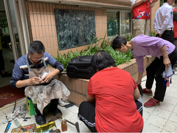 活动现场设置四大服务专区,涵盖居民生活高频需求:万科物业提供家电清洗、地毯养护服务;老匠人团队为居民免费磨刀、修鞋;深圳北京同仁堂星辰药店有限责任公司桂圆中医诊所中医专家开展体质辨证,阳光医疗美容医院、德视佳眼科医生为居民筛查口腔及视力问题。社区张阿姨点赞道:“家门口就能修东西、看医生,连电风扇都帮我洗干净了,太贴心!”