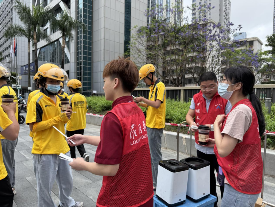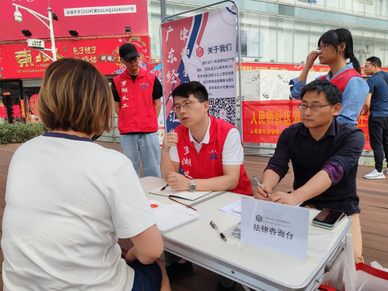 一群朝气蓬勃的青年志愿者们忙碌而有序,他们的身影穿梭在美团外卖人员、快递员以及市容巡查工作人员等新业态劳动者群体之间,手中递出的是一份份承载着清凉与关怀的防暑饮品。与此同时,在职律师们也摆开了“法律咨询台”,为劳务工作者们带来了一场深入浅出的劳动法及相关劳动保障知识科普盛宴。律师们则耐心解答,一对一地进行咨询服务,为有需要的人士排忧解难。