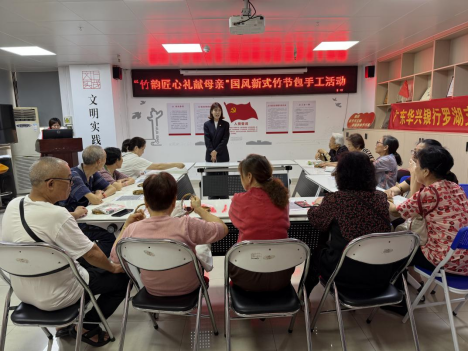 罗湖家园网讯:在母亲节来临之际,为弘扬中华传统非遗文化,人民桥社区党群服务中心于5月8日推出“百千万工程进社区”系列活动——“竹韵匠心·礼献母亲”国风新式竹节包手工活动,吸引15位居民参与,以非遗竹编技艺为纽带,巧手编织传递感恩温情,为社区注入文化温度与孝亲暖流。
