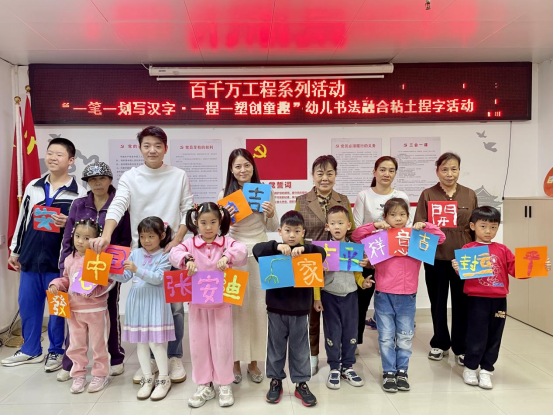 罗湖家园网讯:12月20日上午,人民桥社区党群服务中心开展“一笔一划”写汉字 · 一捏一塑创童趣-幼儿书法融合“粘土”捏字活动,以趣味化、沉浸式体验传承中华汉字文化,搭建亲子互动桥梁。此次活动是社区践行“百千万工程”文化惠民理念的生动实践,吸引10余组亲子家庭踊跃参与,现场温情与童趣交织。