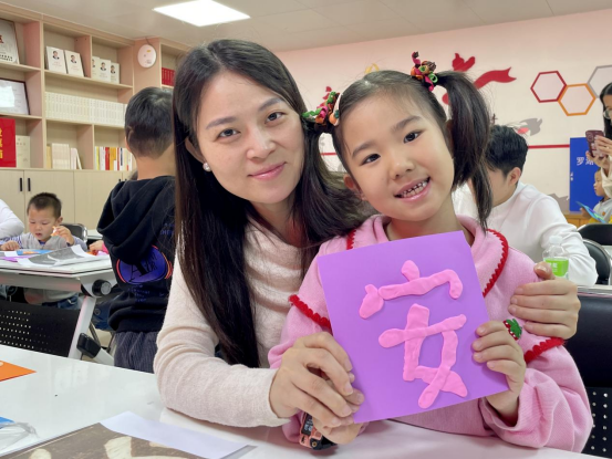“粘土”捏字环节,孩子们发挥奇思妙想,小手攥着“粘土”先细细搓出均匀细条,将彩色“粘土”搓、揉、压、捏成汉字轮廓,让平面汉字变得立体鲜活;有的皱着小眉头调整造型,有的举着刚捏好的‘安’字兴奋地朝家长晃了晃,家长们不时用镜头记录创作瞬间,温馨互动画面随处可见。