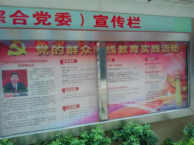 5月19日上午,松园社区张贴“党的群众路线教育实践活动”宣传海报。海报内容主要讲述了党的重点任务:1.解决“四风”突出问题;2.解决关系群众切身利益的问题;3.解决联系服务群众“最后一公里”问题。如果您对我们开展的党的群众路线教育实践活动有任何意见或建议,欢迎来我们社区反映,我们一定耐心倾听并记录。而你们的意见将会更好的指导我们今后的工作。