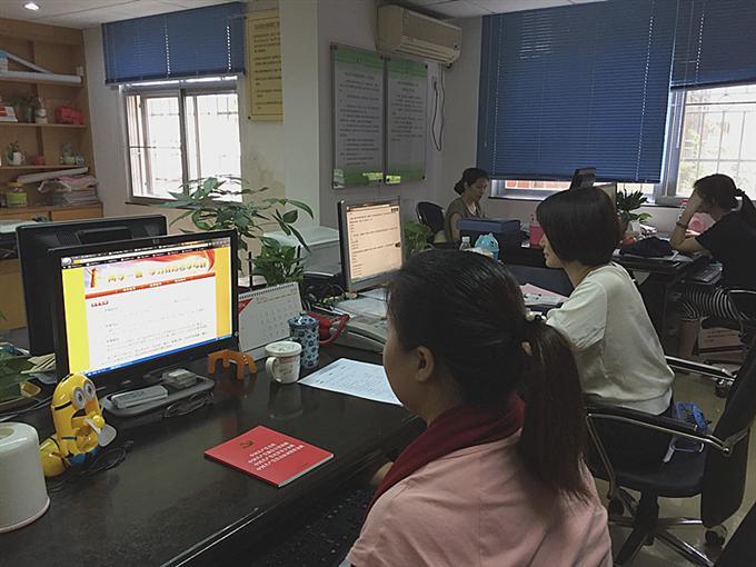 2016年7月13日下午,松园社区党委第一支部的在职党员们正在在广东省党员教育网(www.gdycjy.gov.cn )参加“两学一做”学习教育专题“党员考学”专栏进行学习,考学内容为党章党规和习近平总书记系列重要讲话。