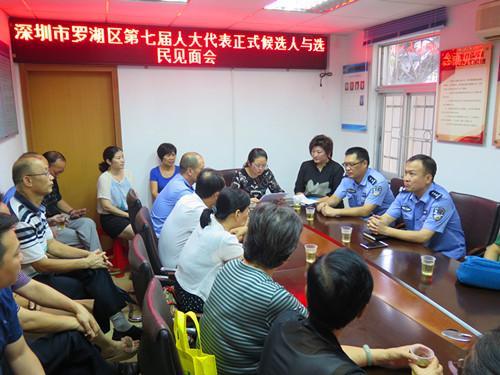 2016年9月18日上午,松园社区在会议室召开了深圳市罗湖区第七届人大代表正式候选人与选民见面会。见面会分4个流程进行:1、首先宣读了会议要求;2、候选人自我评述;3、选民代表对候选人进行提问;4、松园选区负责人总结讲话。