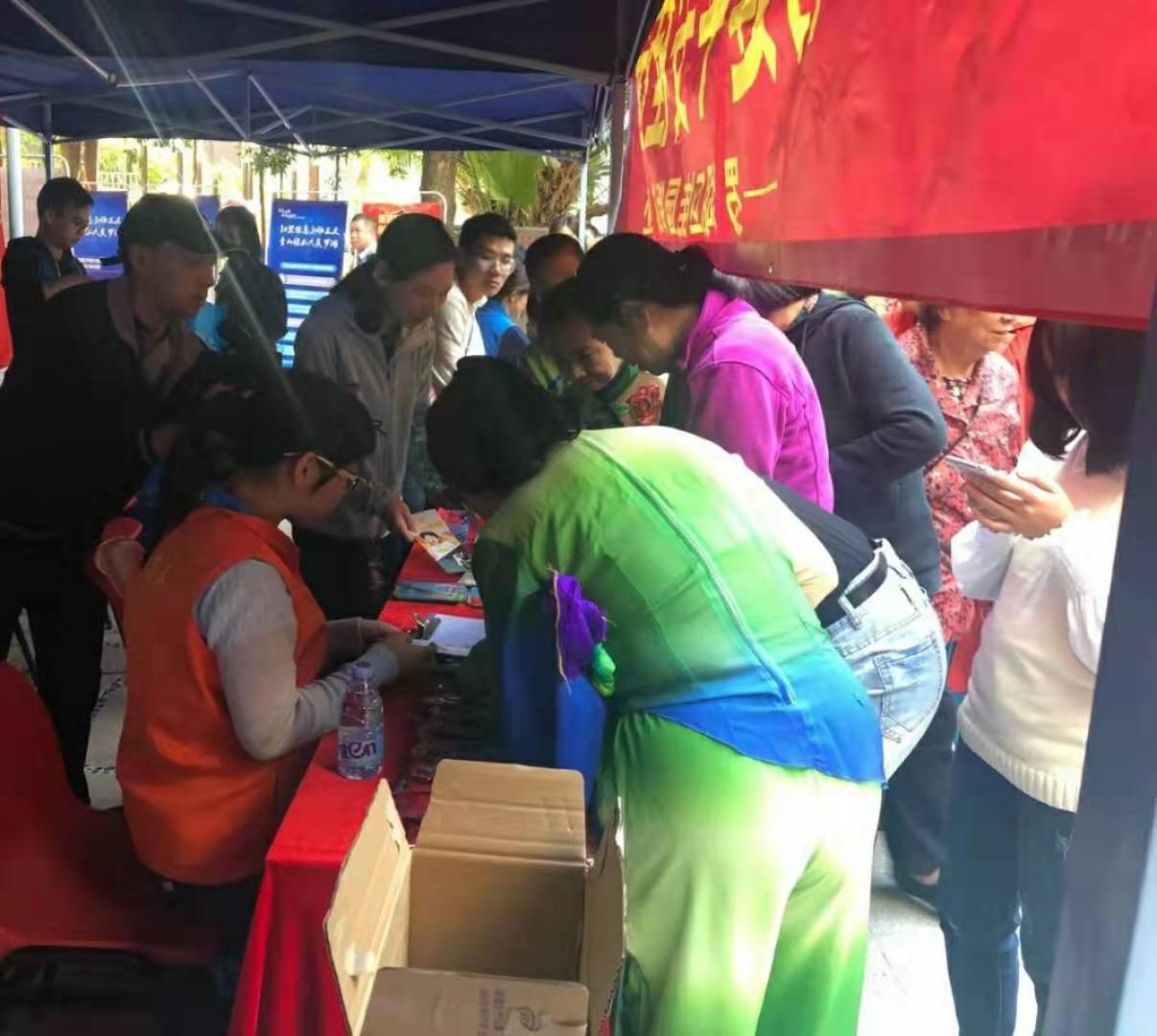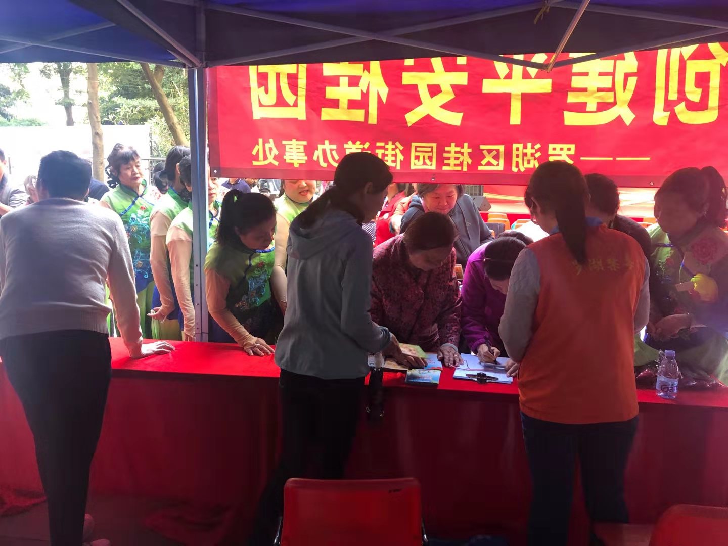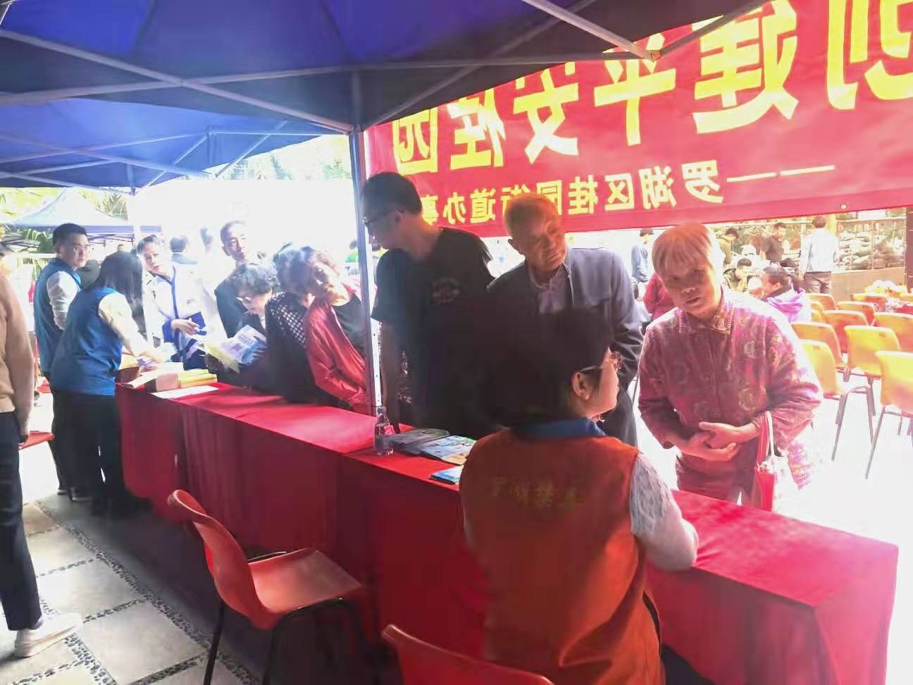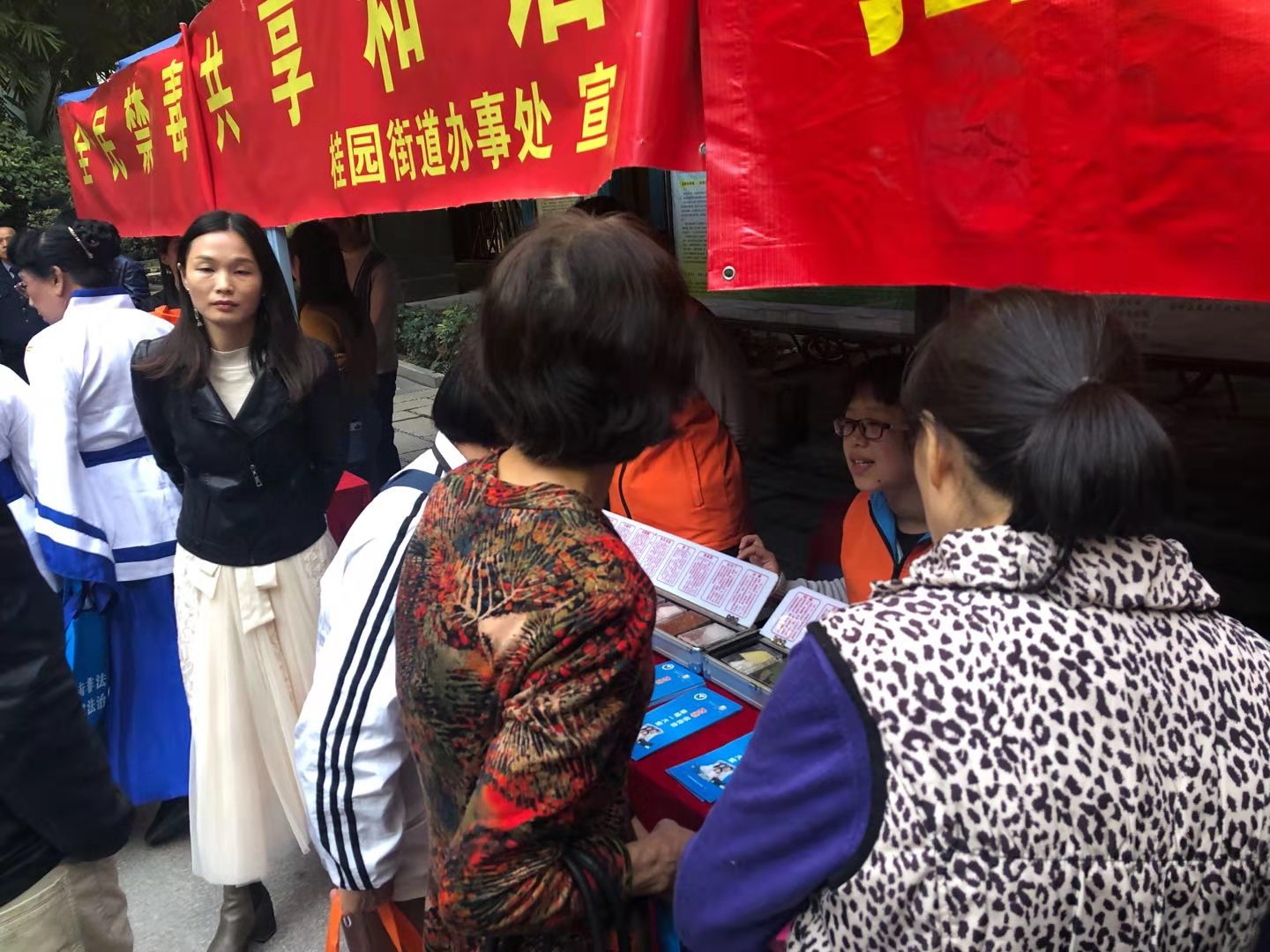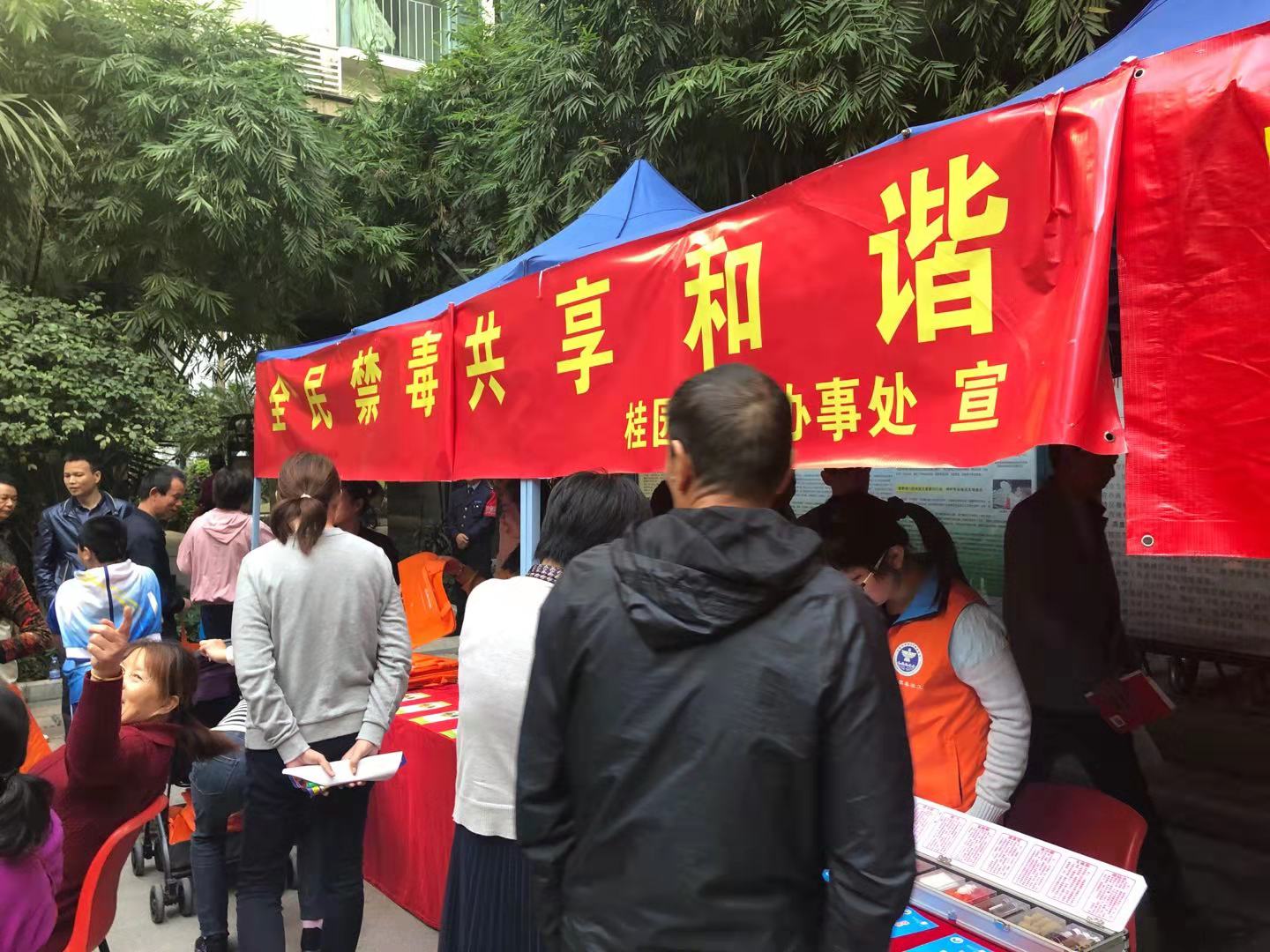 2019年11月29日,桂园街道禁毒宣传活动在松园社区鸿翔花园广场开展,松园社区禁毒工作人员参与此宣传活动。