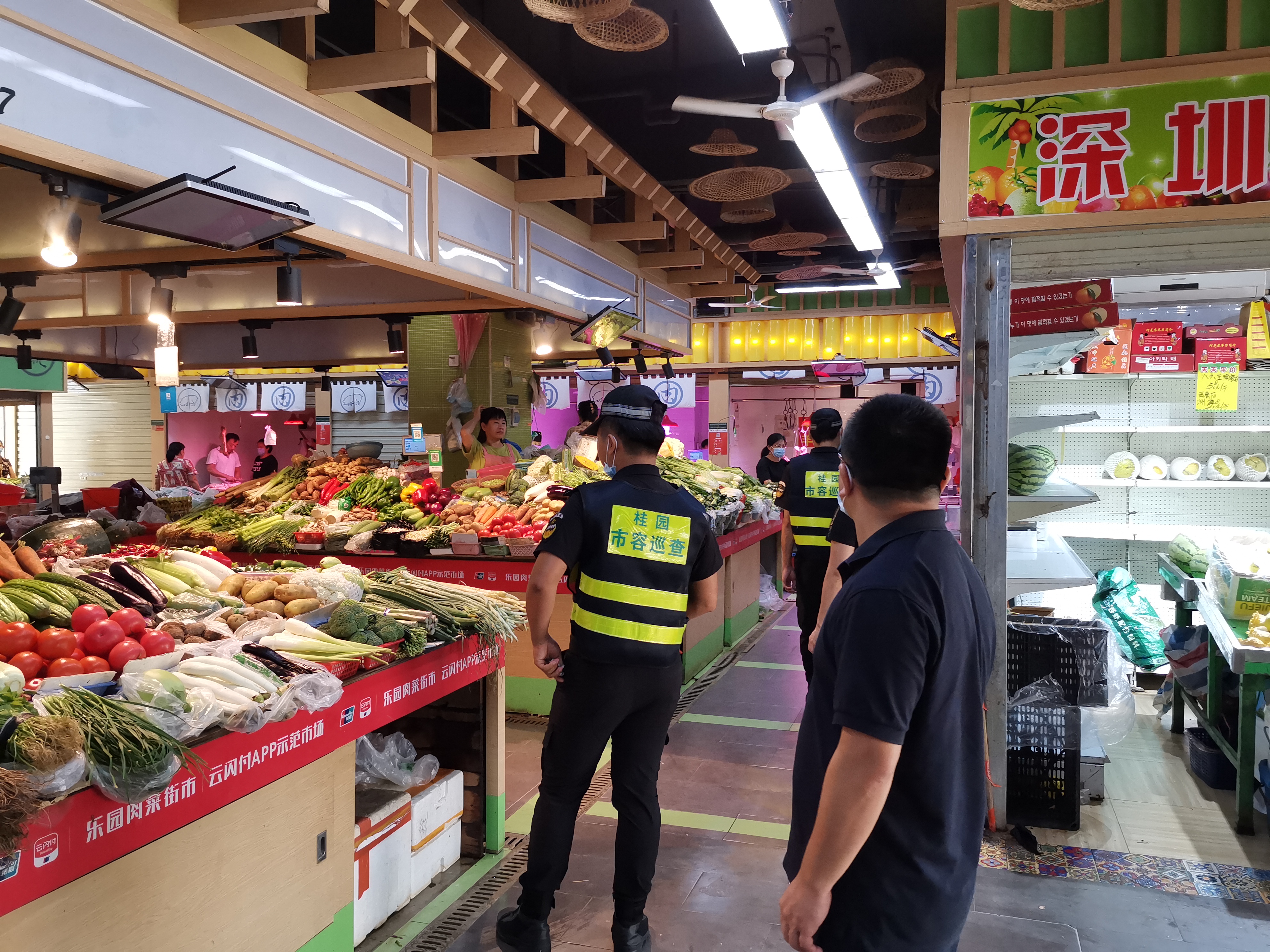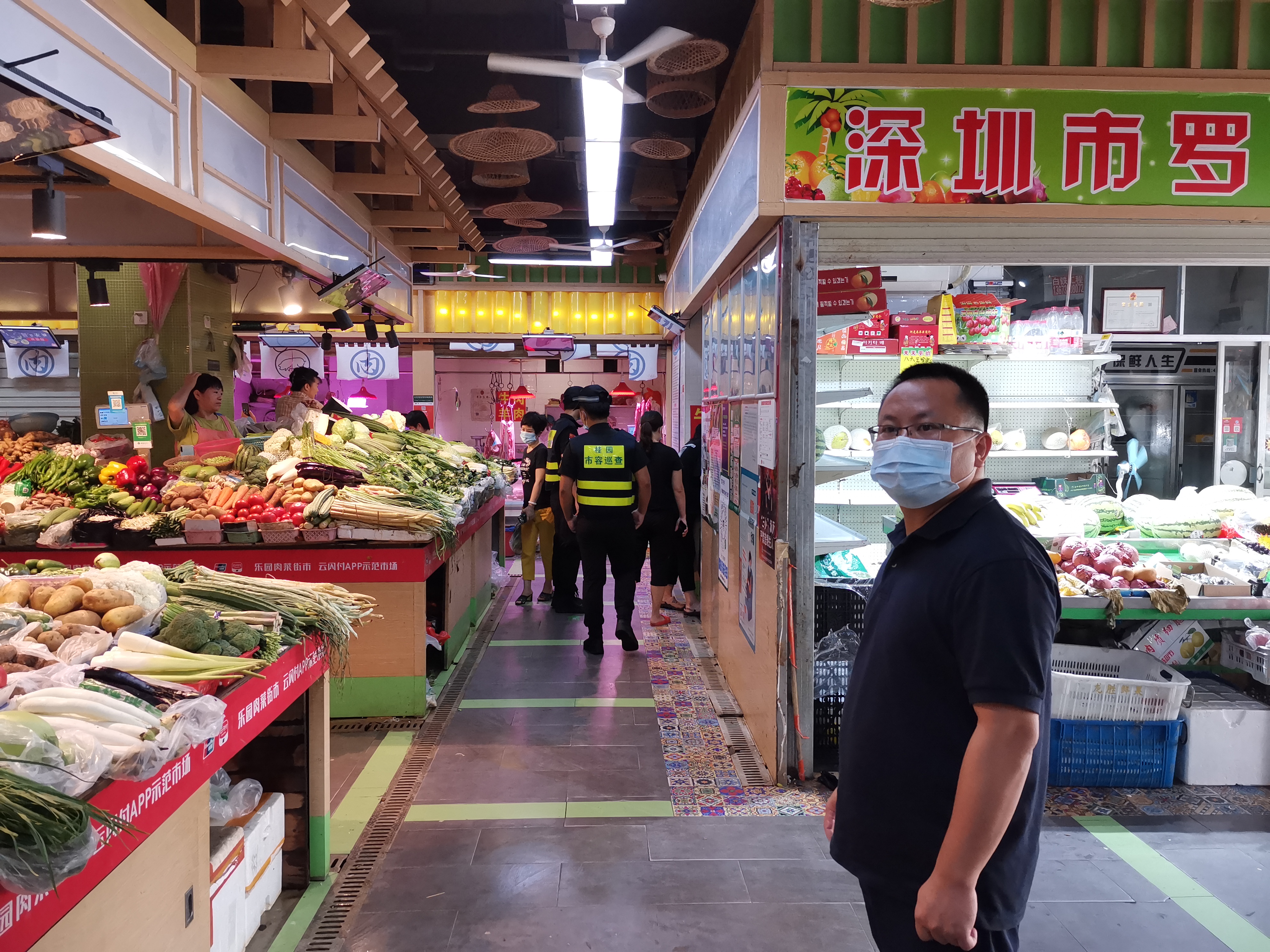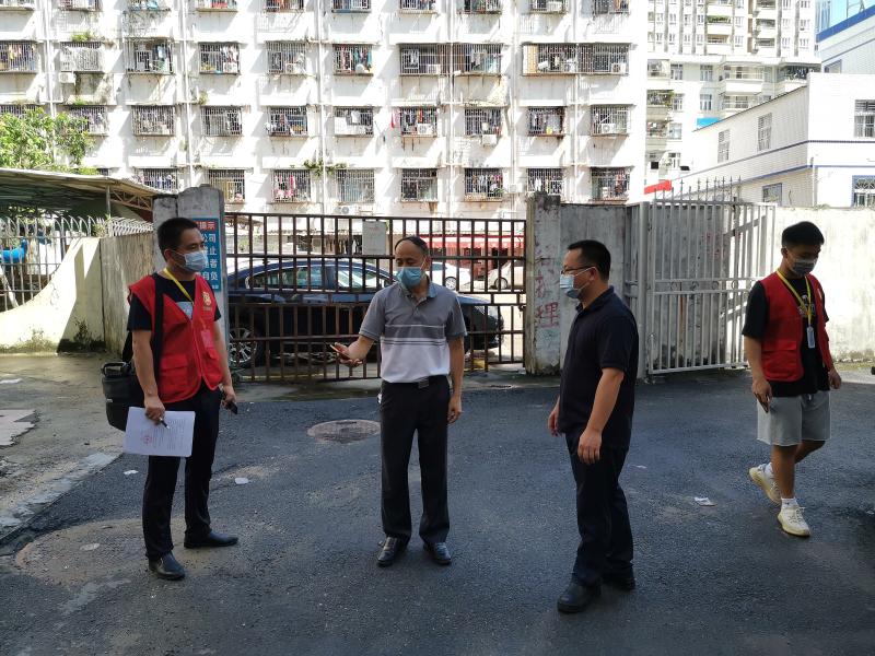 8月20日上午,松园社区党委书记吴国辉到辖区各物业小区、集贸市场巡查、指导疫情防控工作情况。