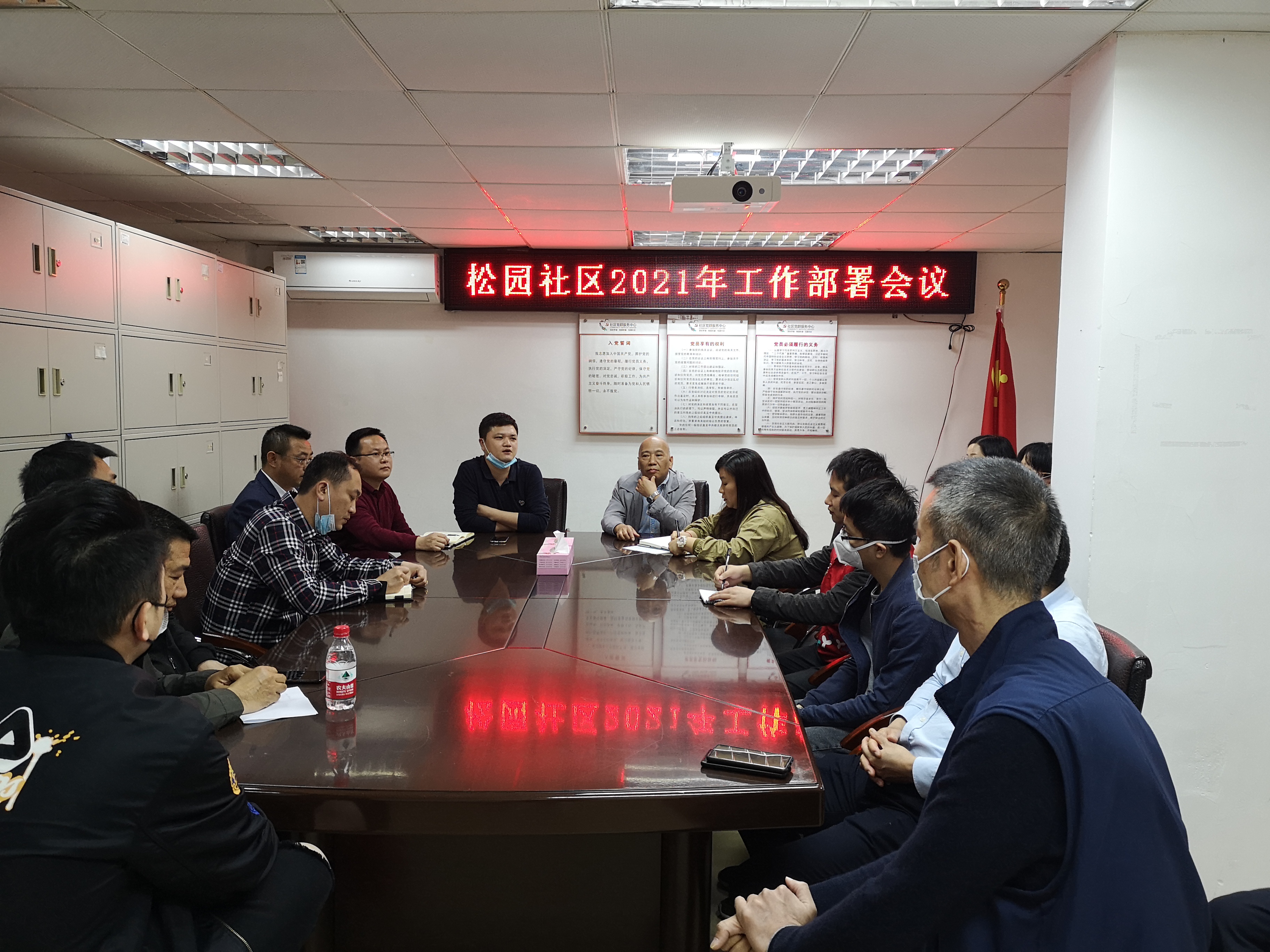 罗湖家园网讯:2021年2月18日,松园社区组织召开了2021年工作部署会议。桂园街道党工委副书记、人大工委主任曹志高,街道党工委委员、社区第一书记陈国龙,党建工作办公室副主任凌远平,社区党委书记吴国辉出席了会议。出席此次会议的各位领导对社区工作人员寄予了新春祝福;在会上,桂园街道党工委副书记、人大工委主任曹志高同志强调2021年我们要把服务工作做得更好,工作能力要有进一步的提升;街道党工委委员、社区第一书记陈国龙同志肯定了我们社区在2020年取得的工作成果,并期望2021年我们能把工作总得更加细致;最后社区党委书记吴国辉同志就具体工作作出安排及部署。