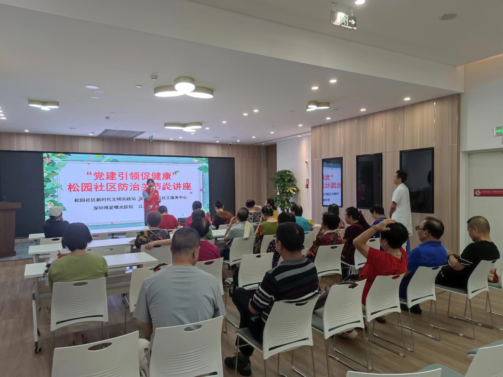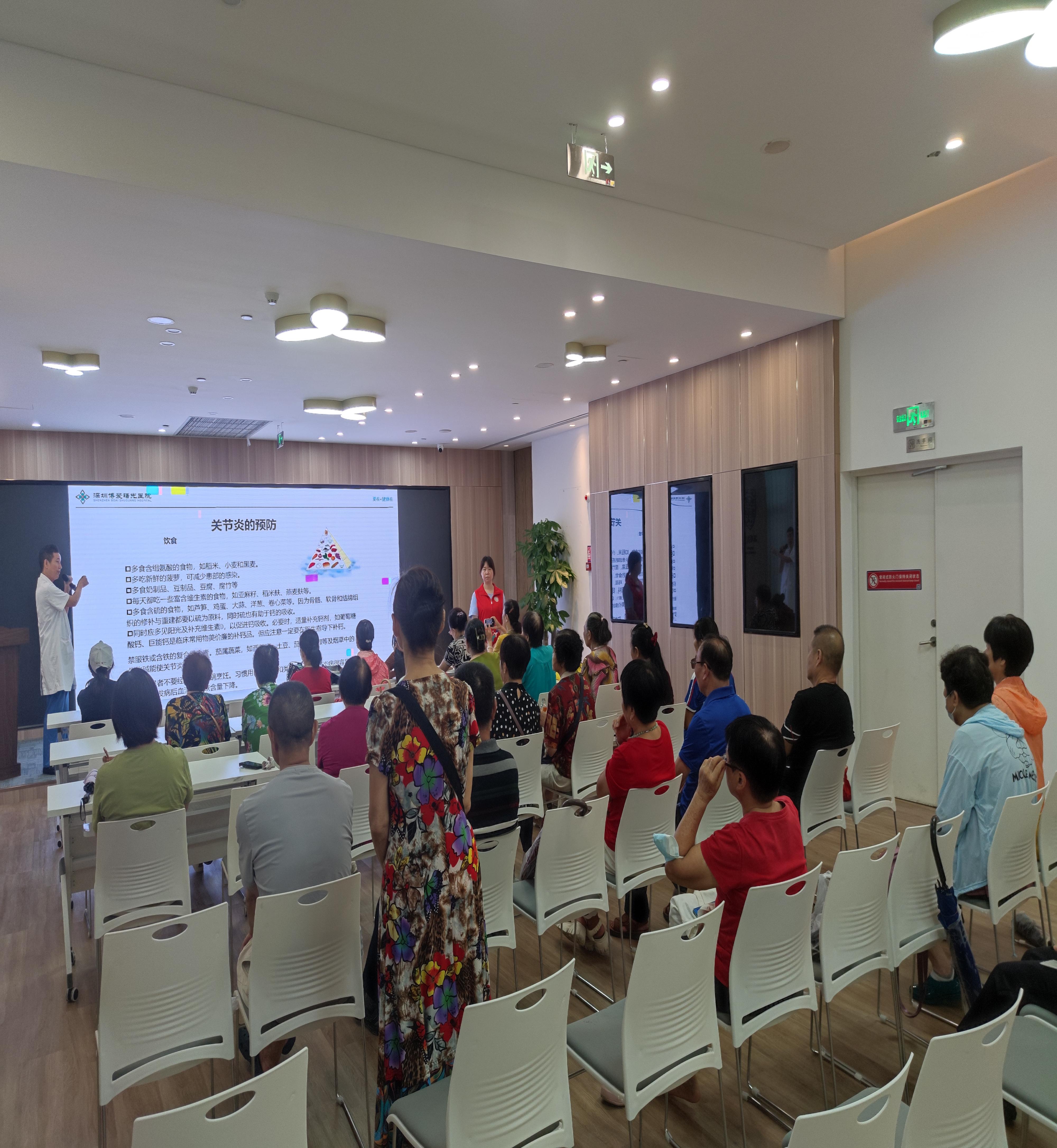 罗湖家园网讯:2023年9月14日上午,松园社区新时代文明实践站、深圳市新现代社工服务中心在国速中心五楼开展“党建引领促健康”松园社区防治关节炎讲座,向长者普及关节炎防治的相关知识,提高长者健康意识和自我保健能力。