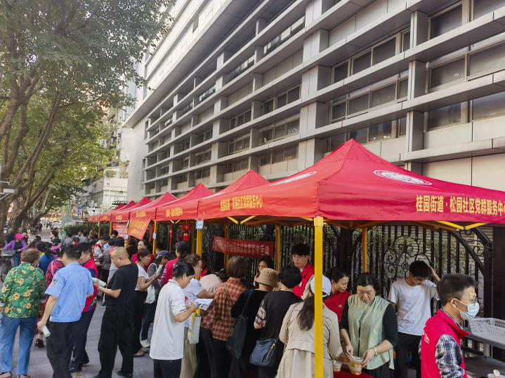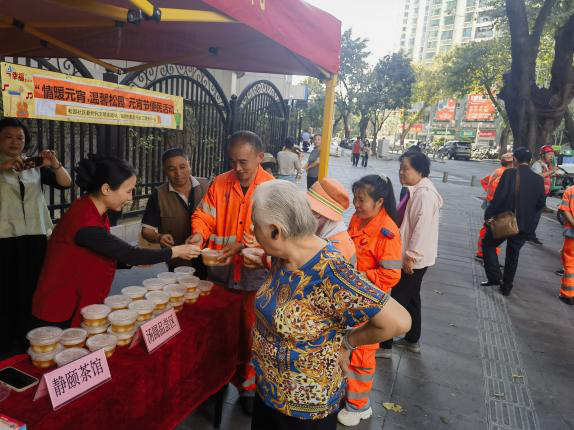 罗湖家园网讯:为让辖区居民过一个既愉快又有收获的元宵节,2月21日下午,松园社区联合辖区招商银行、中国移动、松园社康、静颐茶馆等企业开展了“便民服务日”、“汤圆送送送”、“慰问环卫工人”等系列活动,社区居民、社区工作者以及志愿者近200余人参与。