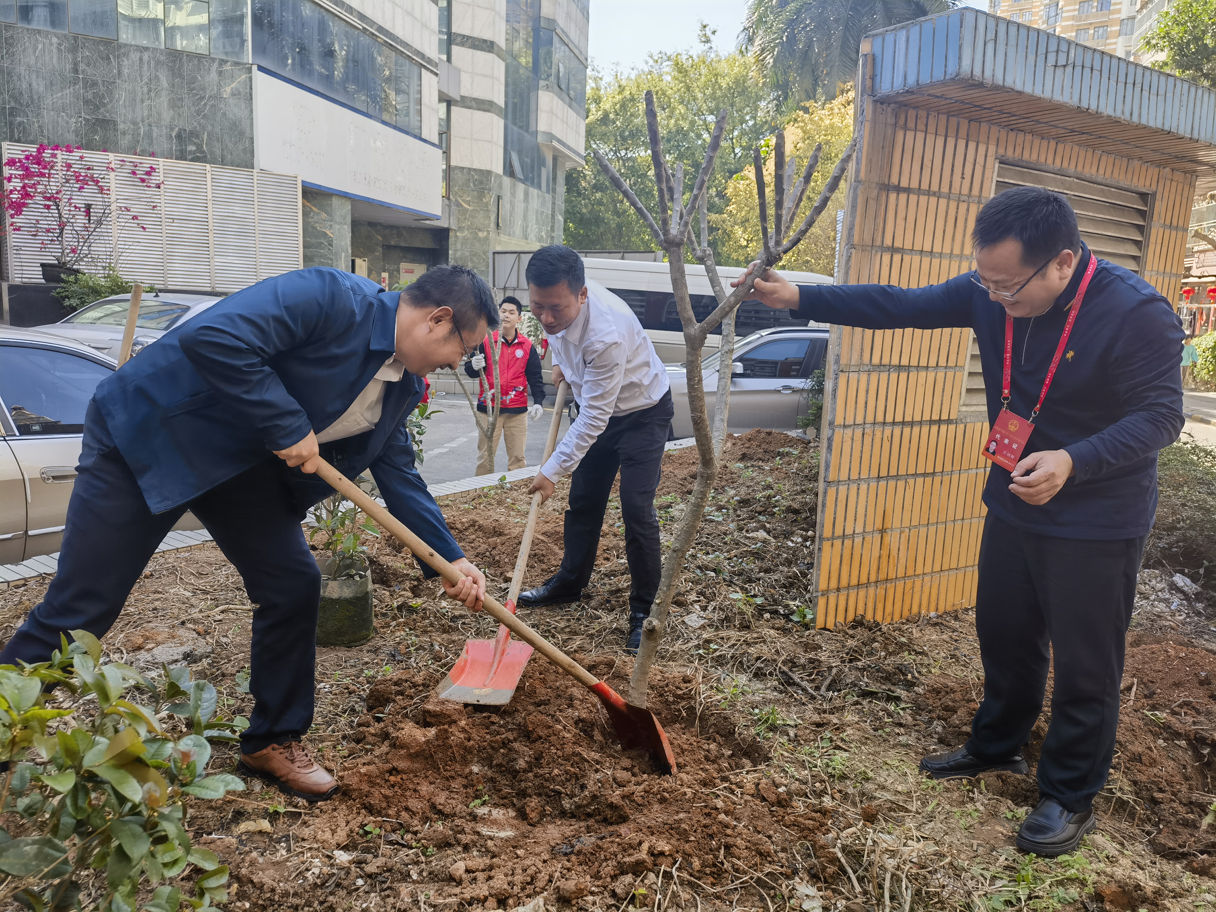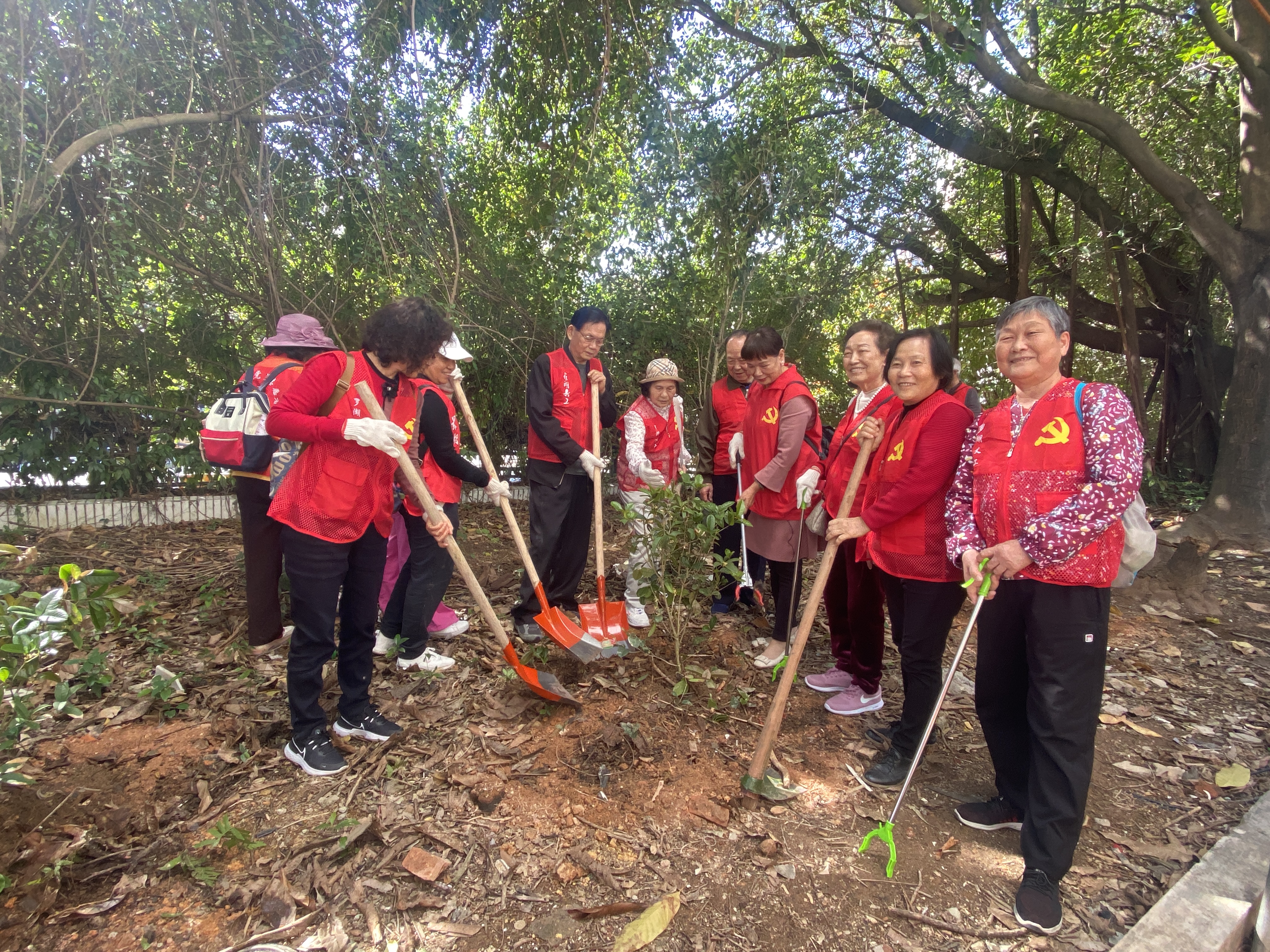 罗湖家园网讯:绿绽枝头春风暖,又是一年植树时。为提高居民爱绿、护绿意识,进一步美化社区环境,在我国第46个植树节之际,松园社区党委结合社区党建品牌“委员服务站”链接资源,组织罗湖区人大代表、罗湖区党代表、罗湖区政协委员及罗湖区“三助力”结对共建单位罗湖区信访局、桂园街道挂点部门党建办、桂园街道退休党员、建设集团大院四个党支部、国速物业党支部、红岭小学党支部、物业单位等单位,分别在建设集团大院及国速党群服务中心法治小花园等开展“植”此绿美,共“树”未来—3·12植树节党建共建主题党日活动。