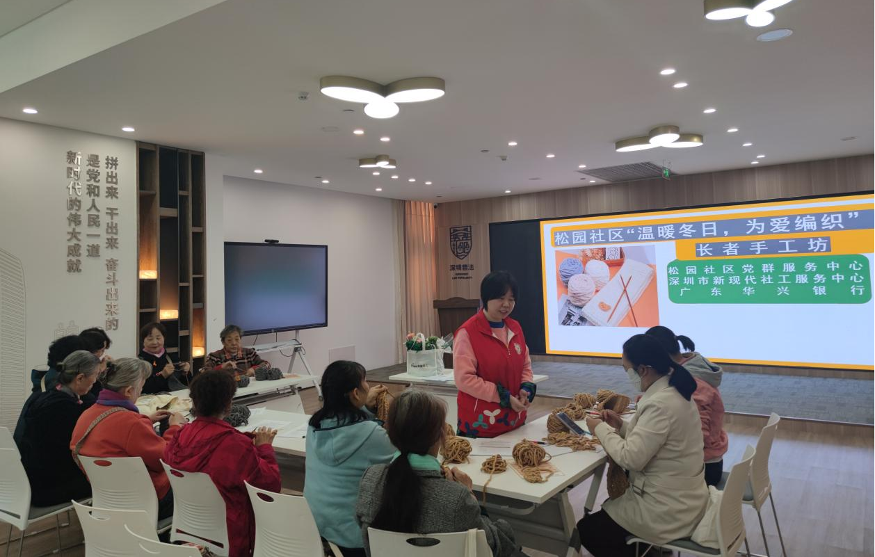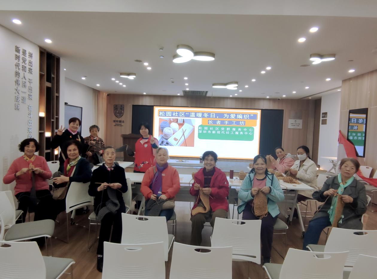 罗湖家园网讯:为了丰富社区长者的精神文化生活,近日松园社区党群服务中心、深圳新现代社工服务中心在国速中心5楼开展了“温暖冬日,为爱编织”长者手工坊。