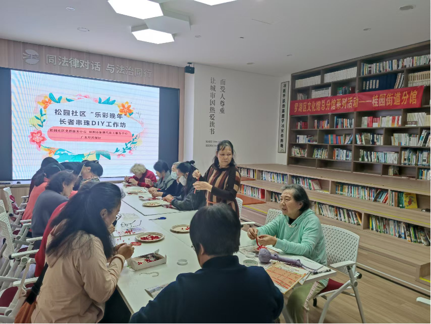 罗湖家园网讯:为了丰富社区长者的生活,2025年2月19日,松园社区党群服务中心、深圳新现代社工服务中心在国速中心5楼,开展了“乐彩晚年”长者串珠DIY工作坊。