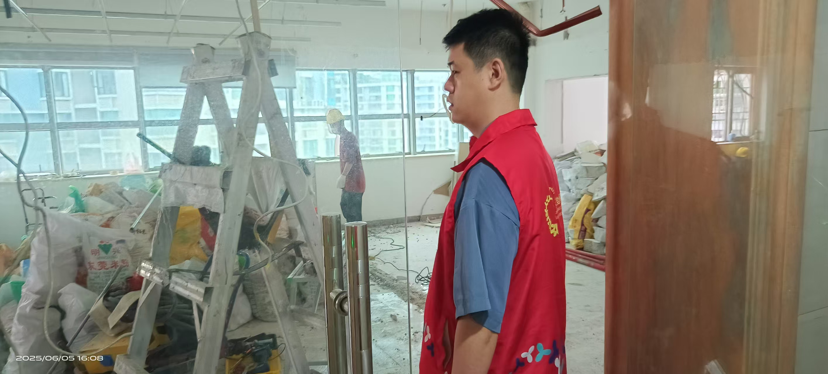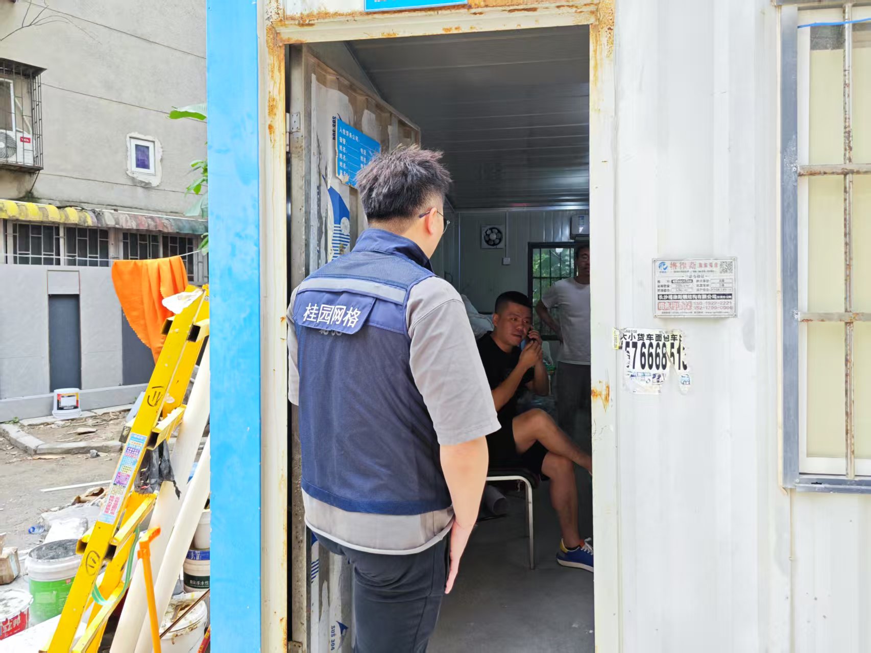 当日社区工作人员组成的巡查队伍,深入辖区在建工地及装修现场,重点围绕施工设备安全、用电规范、消防设施、防暑防汛措施、安全防护用品佩戴等方面展开细致检查。