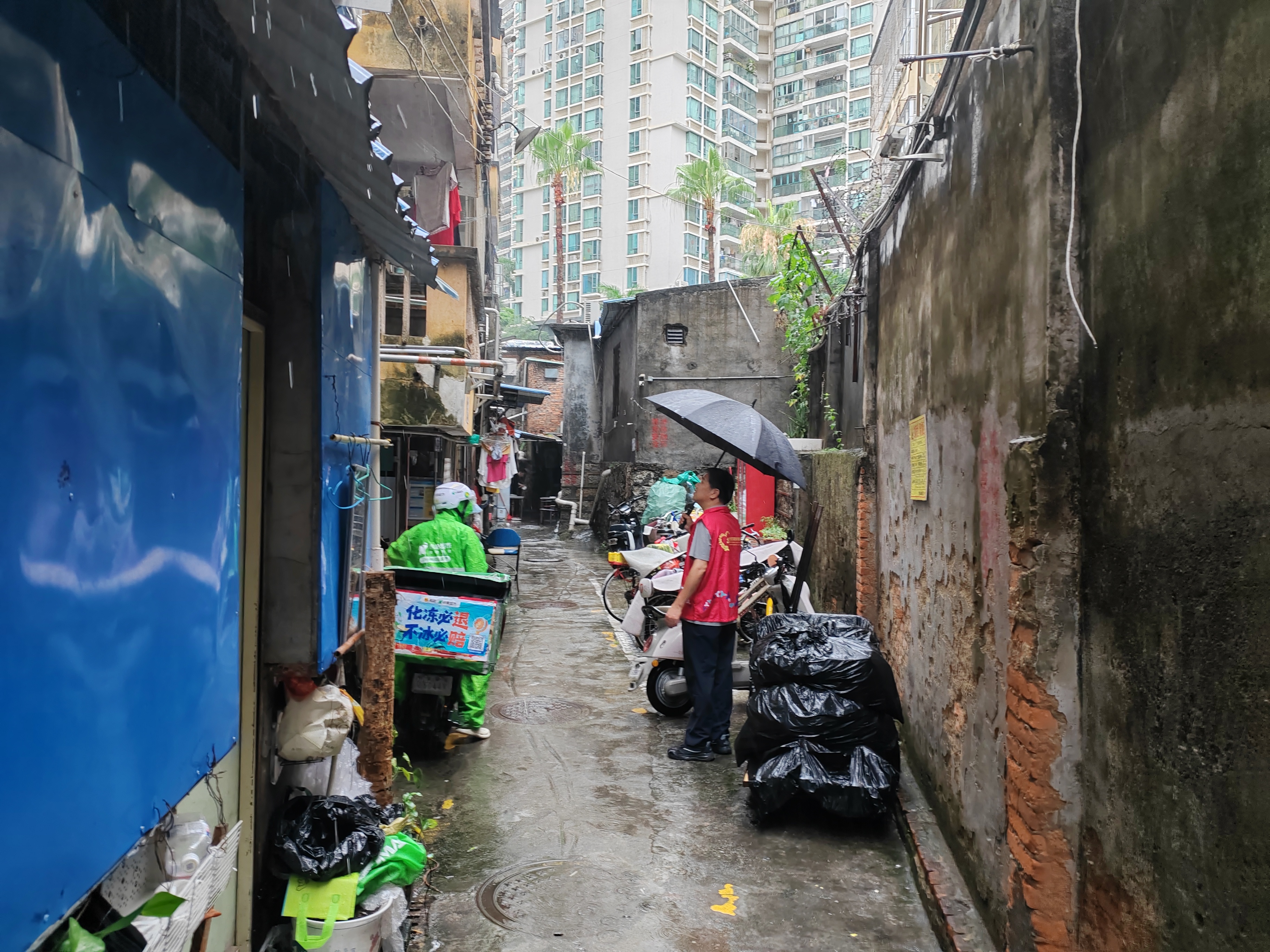 社区工作人员联合网格员组成巡查小组,深入辖区各个角落。对老旧房屋、低洼易涝地段、建筑工地、户外广告牌等重点区域进行全面排查。在老旧房屋区,仔细检查房屋结构是否稳固,排水系统是否畅通;针对户外广告牌,督促商家及时拆除松动、破损的广告牌避免高空坠物。同时,工作人员通过社区微信群、广播等方式,及时发布台风预警信息,提醒居民做好防范措施,减少不必要的外出。