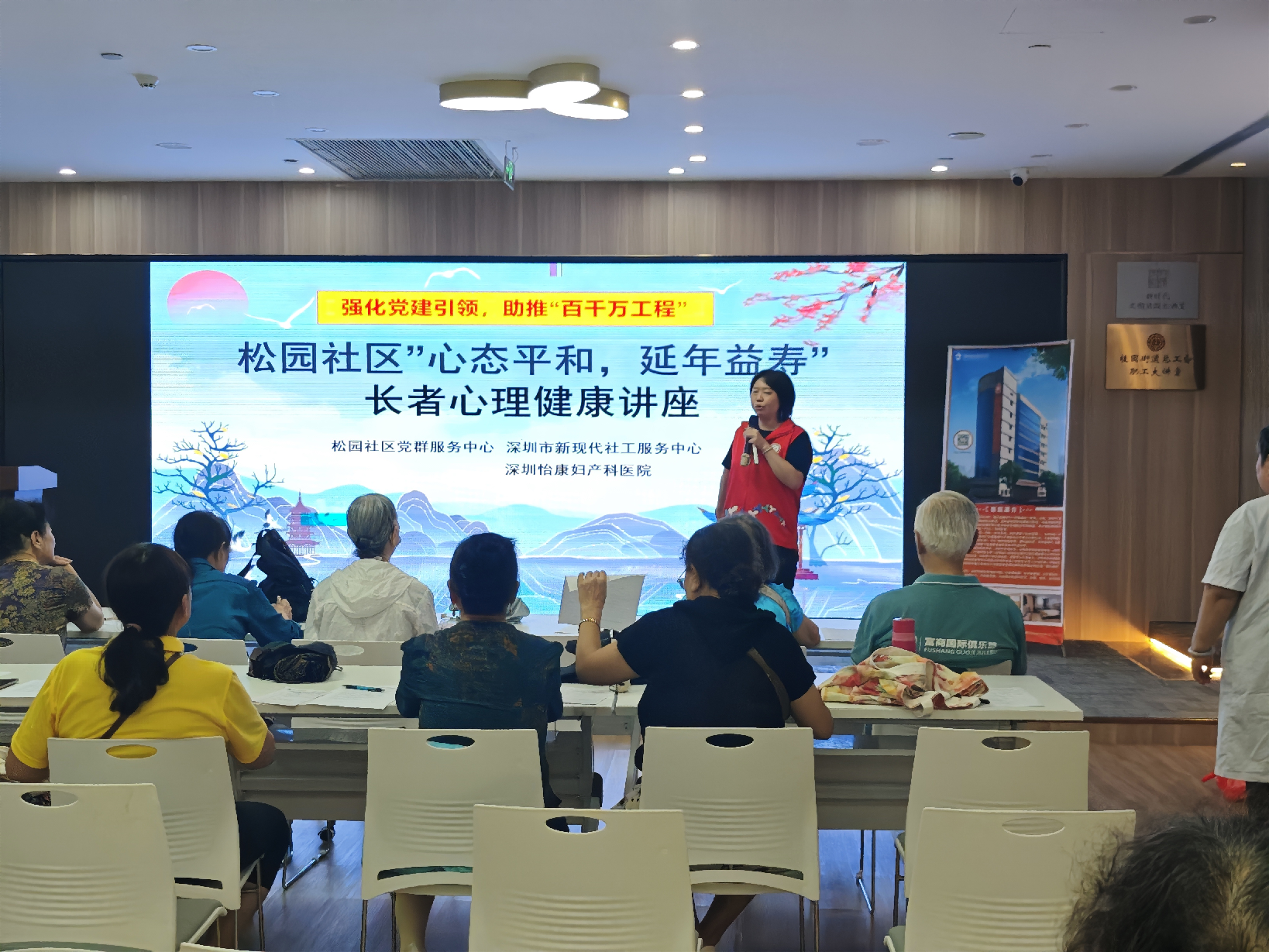 罗湖家园网讯:为强化党建引领,助推“百千万工程”,提升长者对情绪管理的认知,2025年6月17日,松园社区党群服务中心、深圳市新现代社工服务中心、深圳怡康医院开展松园社区“心态平和,延年益寿”长者心理健康讲座,共有21名社区长者参与了此次活动。
