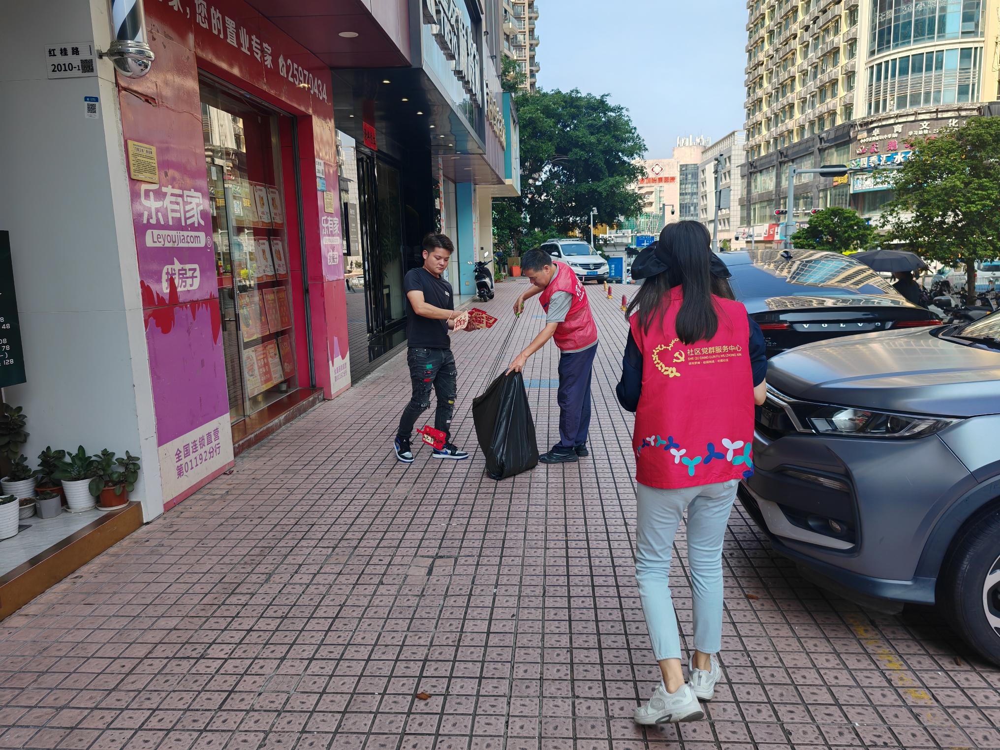 活动中,大家分工协作,重点对小区楼道堆物、绿化带杂草、沿街商铺乱贴乱画及垃圾桶周边污渍进行整治。志愿者们手持夹子、扫帚等工具,清理积存垃圾 。同时,向商户发放《门前三包责任告知书》,引导居民将生活垃圾分类投放。