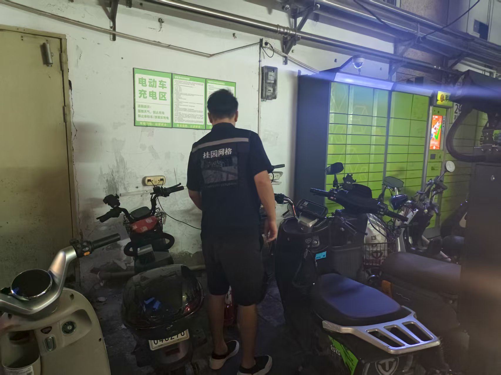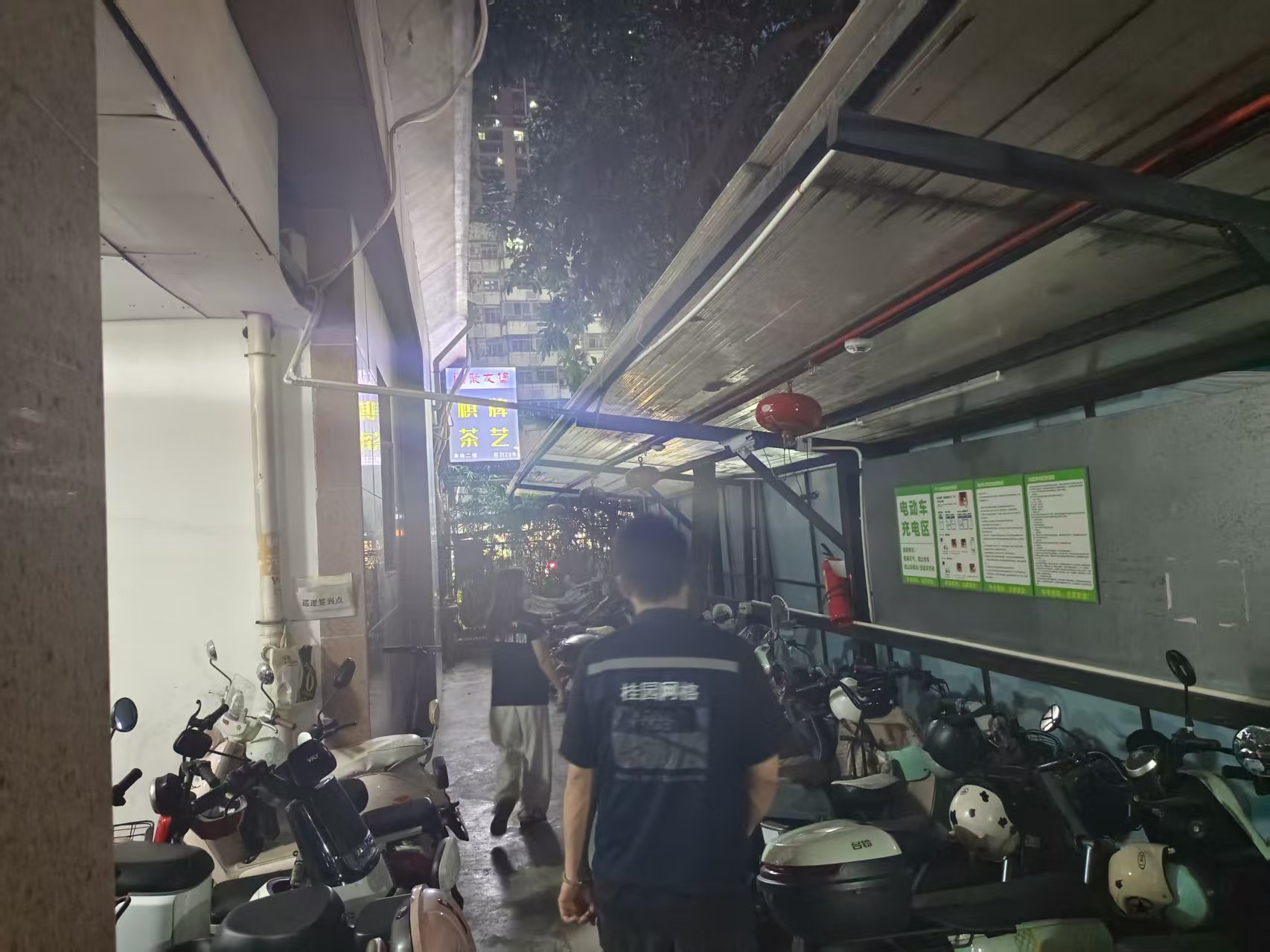 筑牢安全防线!松园社区开展夏季夜间电动车设施消防巡查