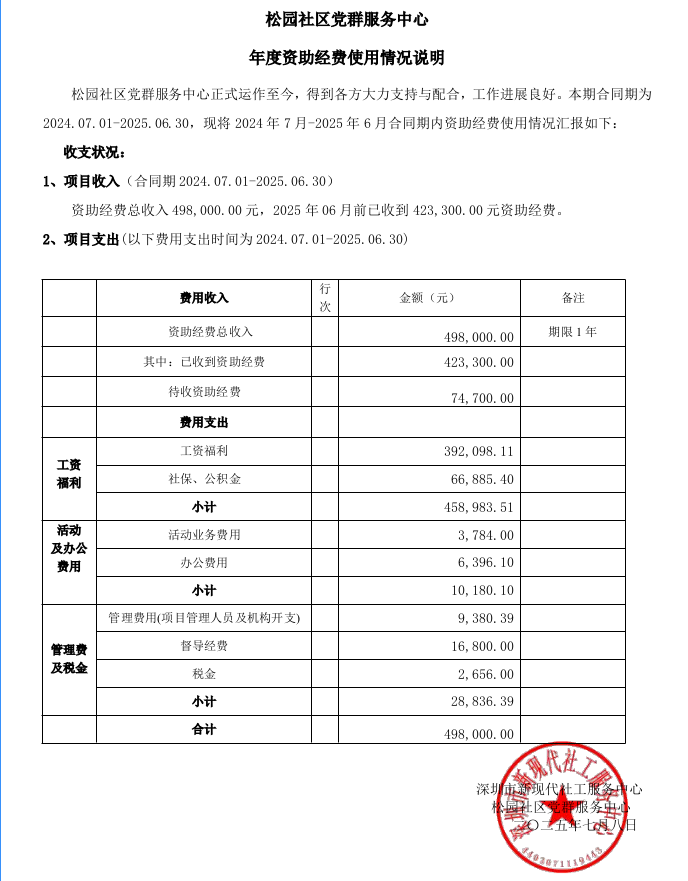 松园社区党群服务中心年度财务公示