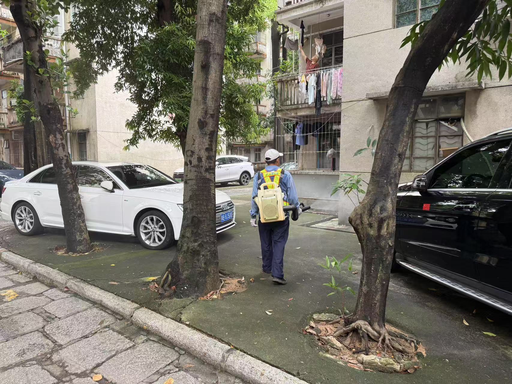 为确保消杀效果最大化且保障居民及环境安全,社区严格规范操作标准,由持证专业人员操作背负式喷雾器,针对蚊虫栖息活动规律合理安排作业时间,重点覆盖绿化带、排水沟、墙角缝隙等易遗漏区域,确保 “点面结合、不留死角”。