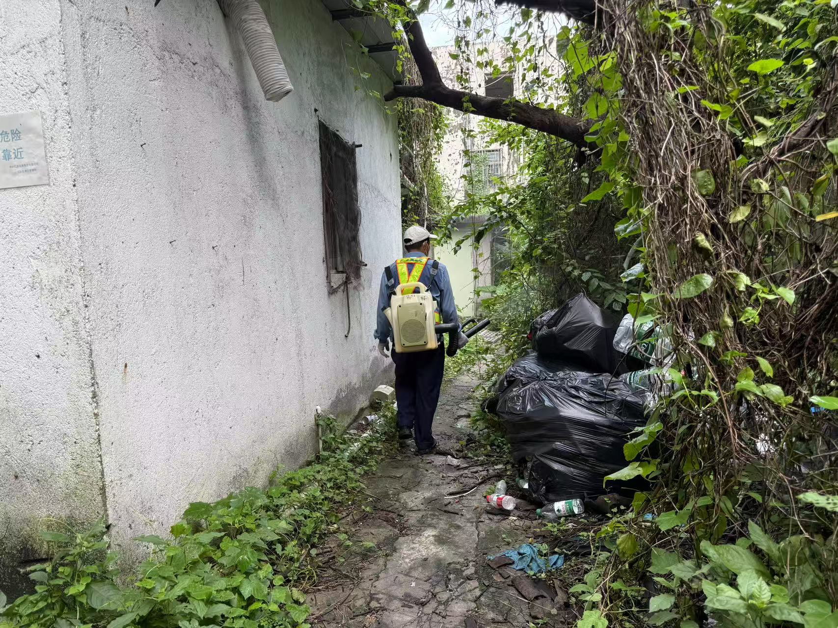 罗湖家园网讯:近日,随着气温升高、降雨增多,基孔肯雅热和登革热等蚊媒传染病进入高发期。为有效切断伊蚊传播途径,守护居民健康安全,松园社区迅速响应上级部署及居民关切,于8月7日起针对辖区内老旧小区及空置房屋开展系统性蚊虫消杀专项行动,以实际行动筑牢公共卫生防线。