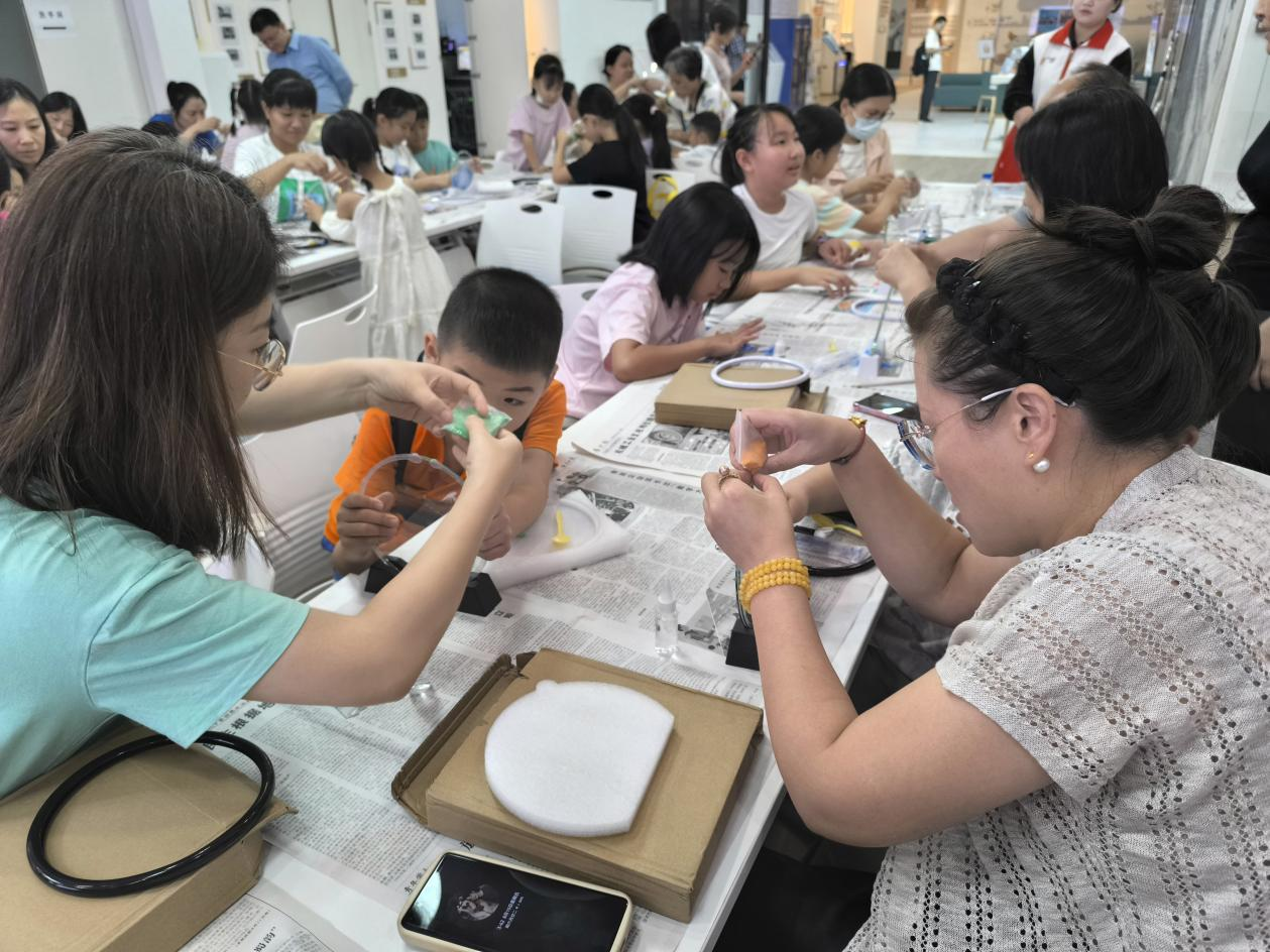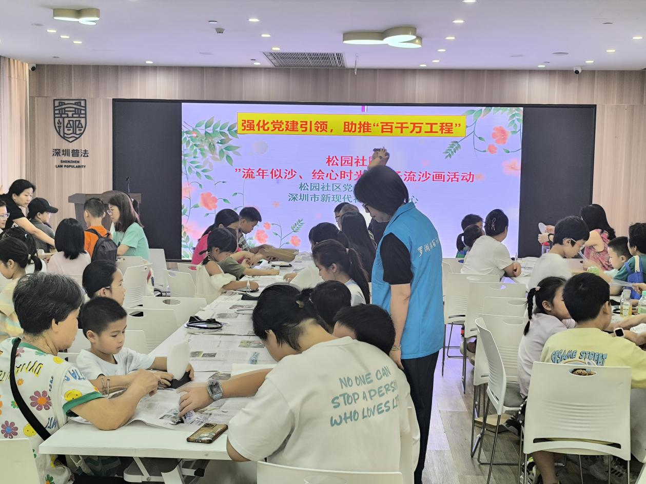 罗湖家园网讯: 为丰富辖区未成年人的暑期生活,增进亲子情感交流,2025年8月15日,在松园社区党委的指导下,松园社区党群服务中心联合深圳新现代社工服务中心,成功举办了“流年似沙、绘心时光”亲子流沙画活动。活动吸引了26对社区亲子家庭参与,现场欢声笑语,创意飞扬。