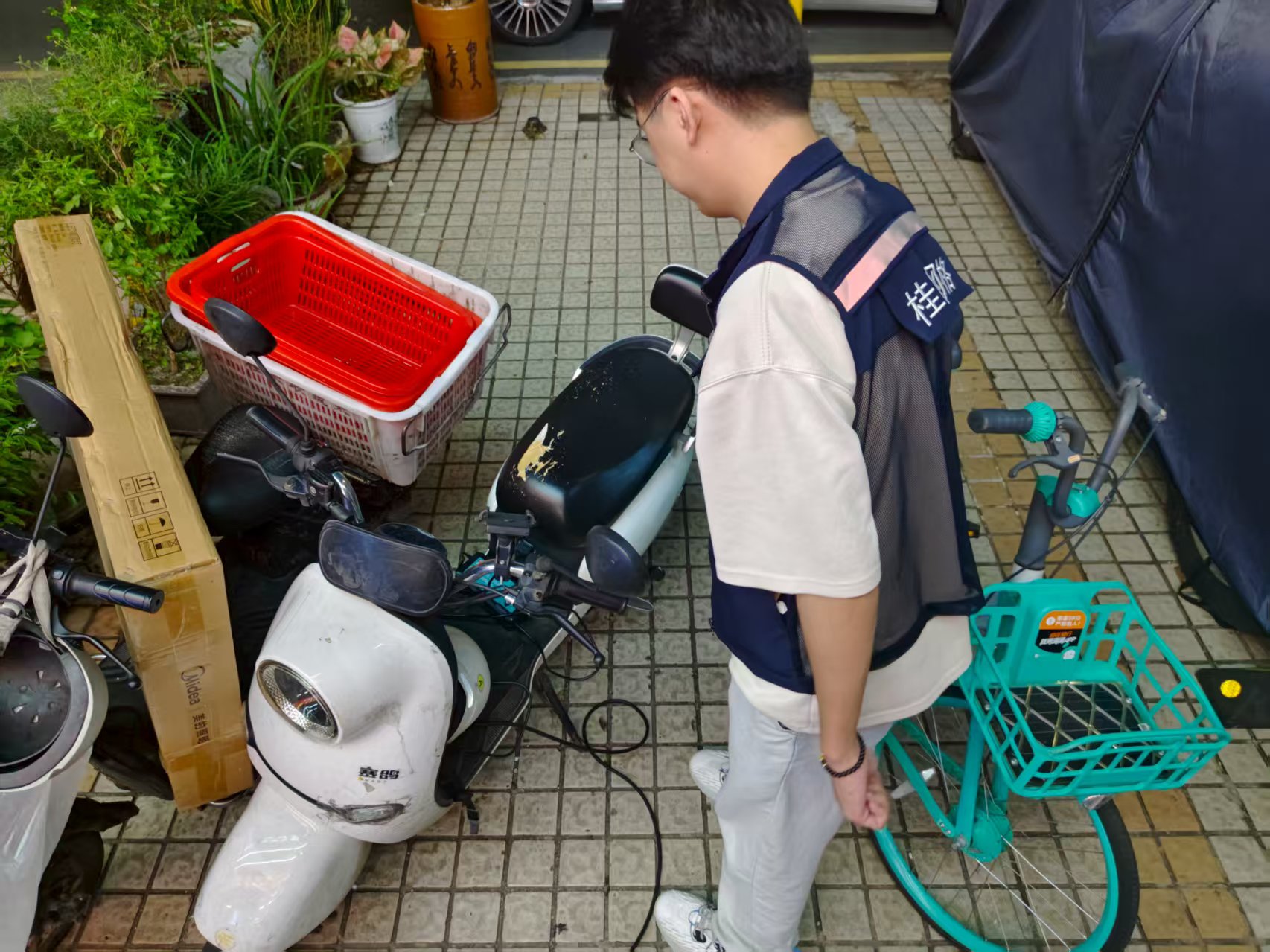 罗湖家园网讯:夏日高温来袭,电动自行车消防安全隐患进入高发期。8 月 16 日至 17 日松园社区网格员,针对辖区内电动自行车飞线充电、充电换电柜及公共充电桩开展专项安全检查,切实保障居民生命财产安全。