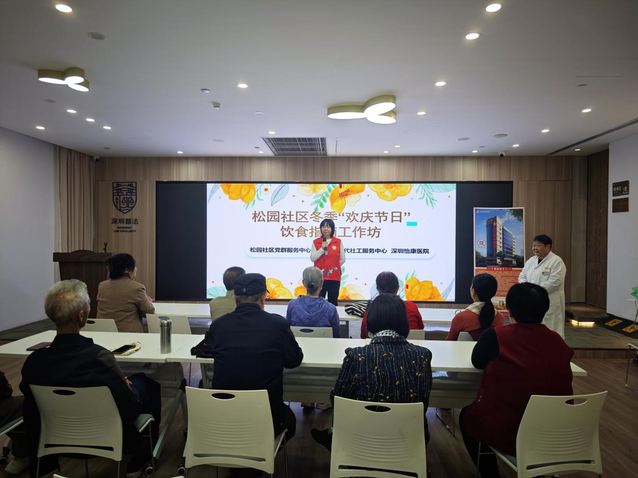 罗湖家园网讯:节日即将来临,为了能够让社区长者度过一个更加健康更加幸福的节日,2026年1月20日下午,松园社区党群服务中心、深圳市新现代社工服务中心开展松园社区冬季“欢庆节日”饮食指南工作坊。