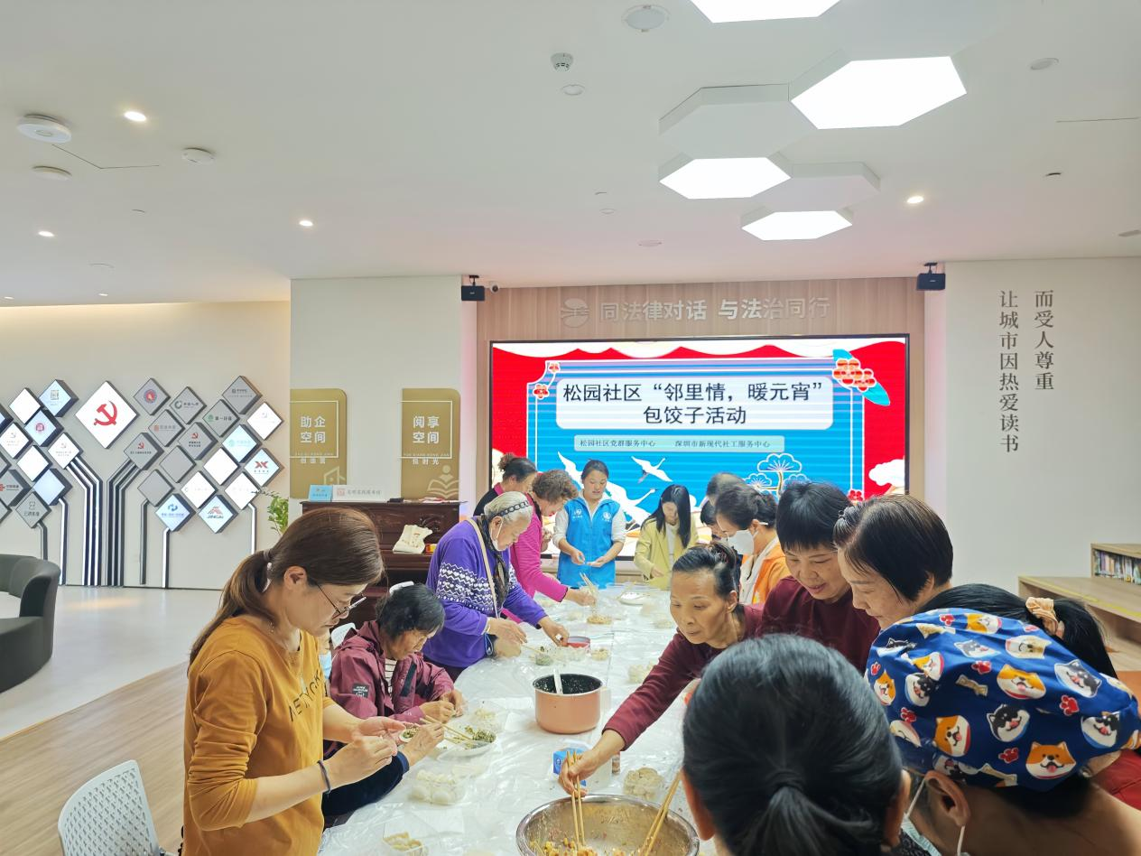 罗湖家园网讯:在元宵节来临之际,为丰富社区长者生活,2026年2月2日下午,松园社区党群服务中心、深圳市新现代社工服务中心,在国速中心5楼开展“邻里情,暖元宵”包饺子活动。