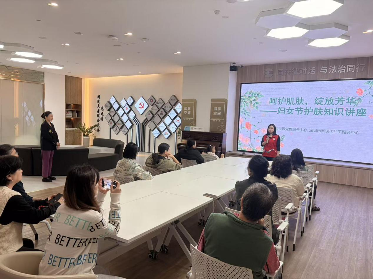 罗湖家园网讯:为庆祝“三八”国际妇女节,关爱社区女性身心健康,2026年3月7日下午,在松园社区党委的精心指导下,松园社区党群服务中心联合深圳新现代社工服务中心,成功举办“呵护肌肤,绽放芳华”护肤知识公益讲座活动。特邀深圳博爱曙光医院邓莉娟老师主讲,吸引15名女性居民参与。