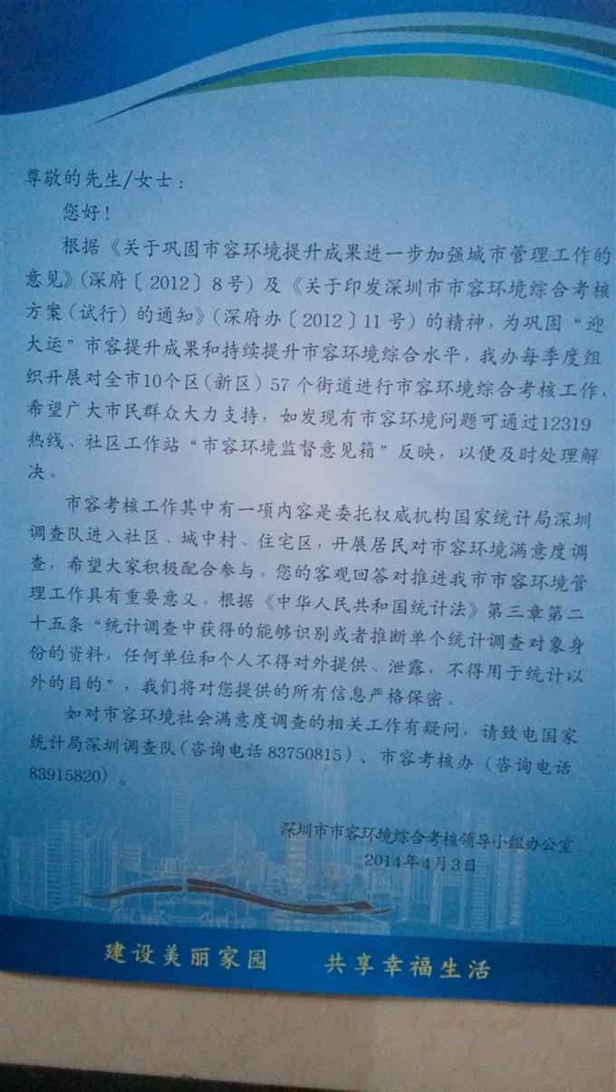 新围社区张贴深圳市市容环境综合考核领导小组办公室《致广大市民朋友的一封信》