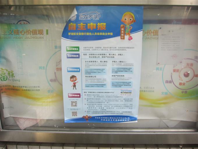 新围社区张贴《罗湖区居住人员信息自主申报服务指引》宣传海报