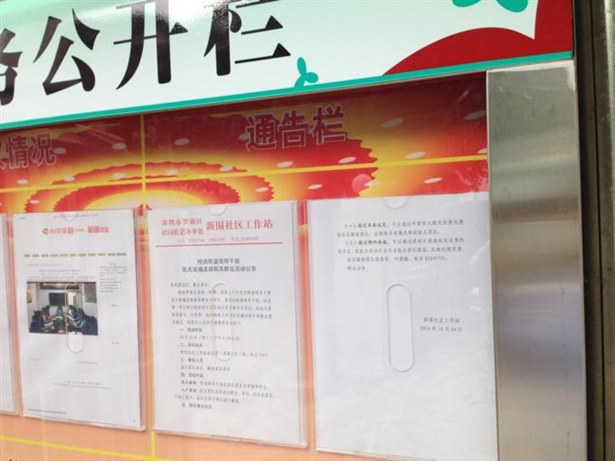 2016年10月24日,新围社区在公开栏张贴2016年10月第三次驻点日活动公告。