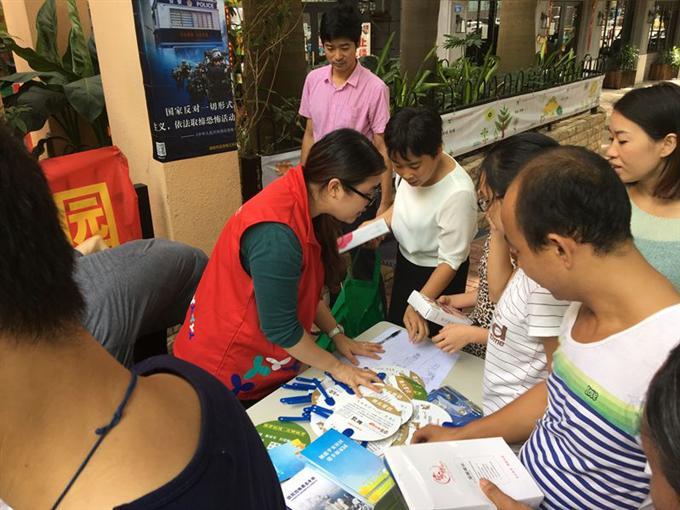 2017年8月16日下午,为进一步提高辖区市民防范恐怖袭击意识,新围社区积极响应街道关于法治建设“四级同创”的工作号召,在蔡屋围新八、九坊牌坊门口开展防范恐怖袭击宣传活动。此次活动市民参与热情高,共派发防范恐怖袭击手册200份、小礼品毛巾50份,洗洁精50份,盒装纸巾、扇子各200份。