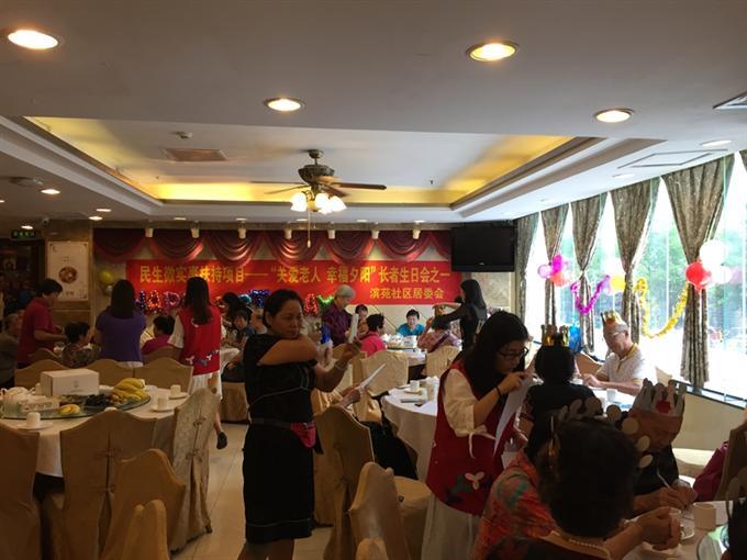 为提高长者对社区的归属感和融入感,增进邻里间团结互爱,促进社区的和谐共融,在民生微实事扶持下,2017年9月5日上午滨苑社区居委会在蔡屋围大酒店举办了两期温馨而又欢乐的“关爱老人,幸福夕阳”集体生日会。
