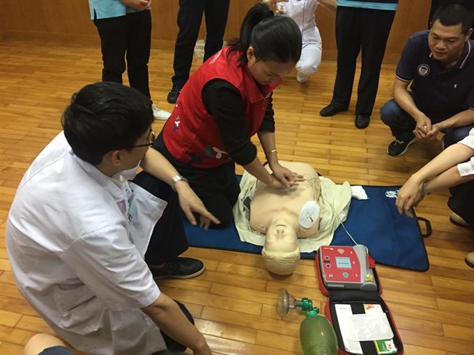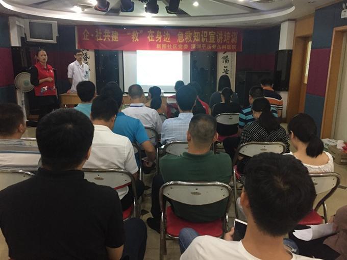 2018年8月24日下午,新围社区联合平乐骨伤科医院在新围老年人协会活动中心二楼开展急救知识宣讲培训,主讲心肺复苏, 50余名辖区居民聆听讲座。心肺复苏(CPR)是针对呼吸心跳停止的急症危重病人所采取的抢救关键措施,需充分了解相关知识并接受过此方面的训练后才可为他人实施心肺复苏,医生详细介绍了开展心肺复苏步骤,并提供道具给辖区居民实践演习该急救知识。