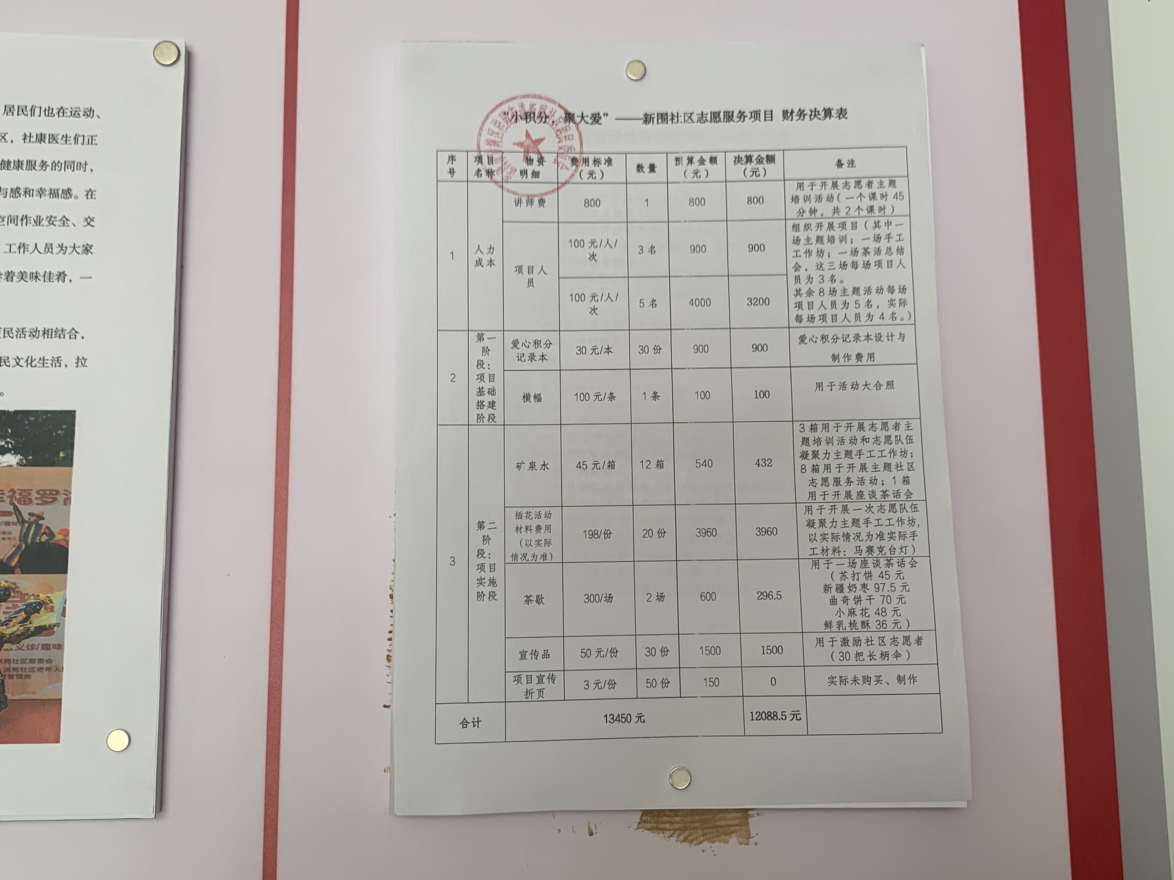 【财务公示】“小积分,聚大爱”——新围社区志愿服务项目财务决算表