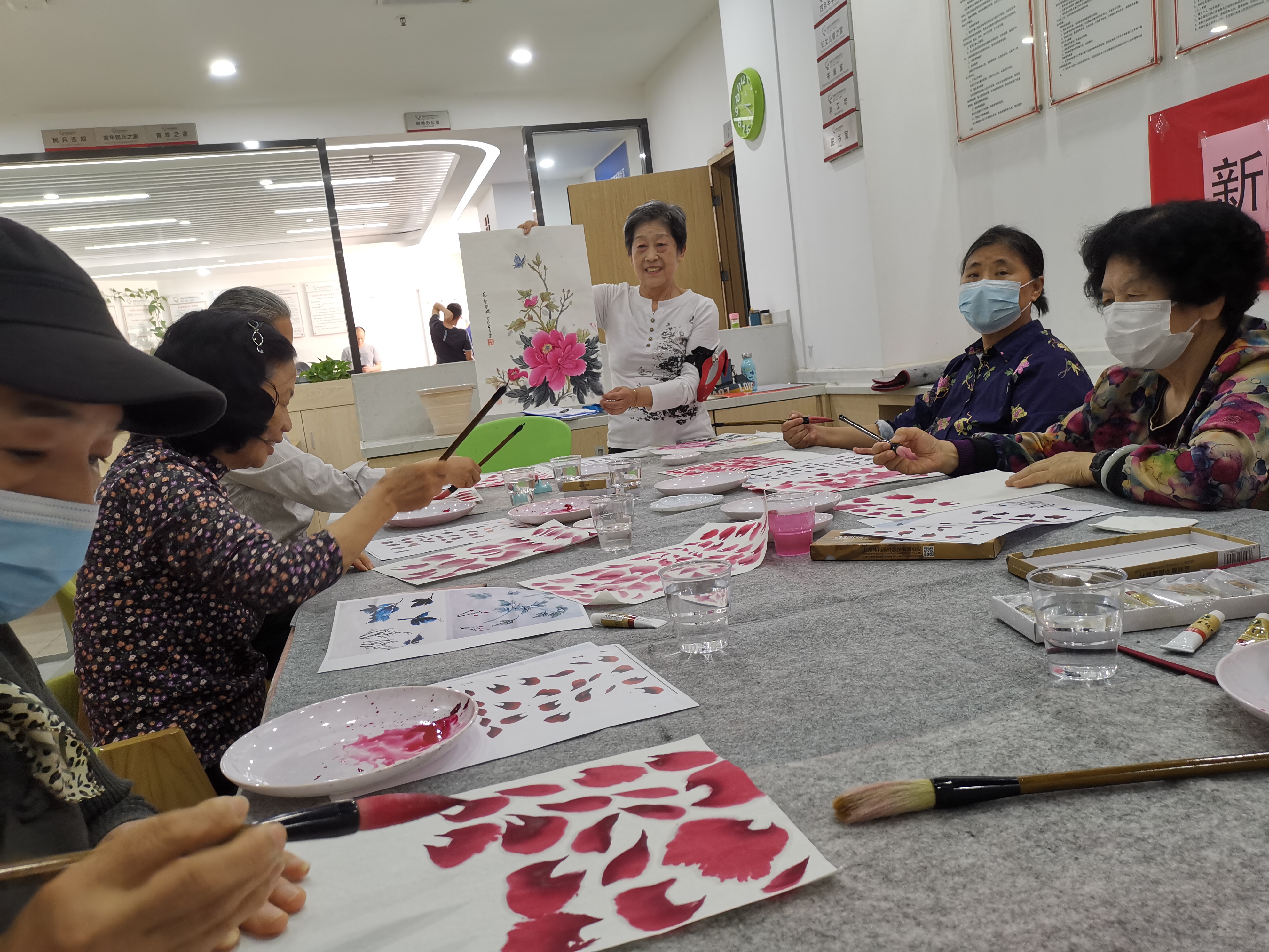 新围社区国画社的特色:达人授课+自组织模式。本期学员既是书画爱好者也是社区志愿者。他们共同参与社团管理,自主管理活动室、布展策展等。此次课程,再次邀请到了滨苑社区老年人协会的韩维加担任老师,共十四节课;第一、第二节复习课,第三至第八节课牡丹+蜜蜂、蝴蝶的画法,第九至第十四课是梅花(或者莲花)的画法;最后把学员的作品办一个画展。课堂上,韩老师分享了“以形写神、形神兼备,意存笔先,画尽意在” 学习国画的心得;韩老师鼓励学员:希望大家一步一脚印,努力和上进不是为了给别人看,而是为了不辜负自己,付出实际行动生活会更充实,与梦想的距离也会更近一点。