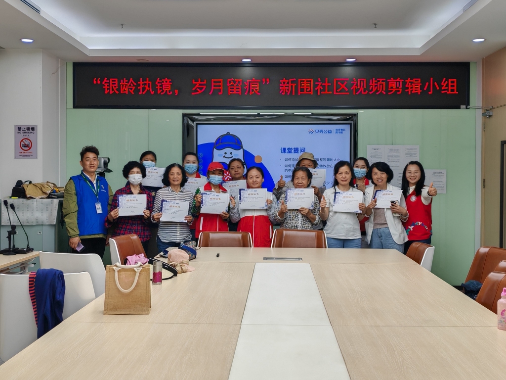 罗湖家园网讯:4月15日,在桂园街道新围社区党委的引领下,新围社区党群服务中心、南风社会工作服务社联合贝壳公益和社区志愿者举办的“银龄执镜,岁月留痕”视频剪辑小组迎来最后一课。经过五节课程的学习,银龄学员用镜头讲述生活故事,为课程画上圆满句点。