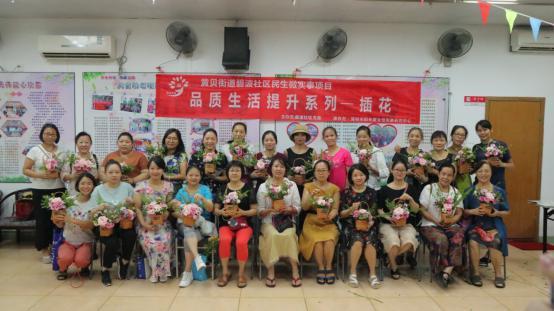 2019年6月27日下午2:30-4:30由深圳市阳光爱女性形象研究中心承办的民生微实事项目,品质生活提升系列-插花课程,在碧波社区党群服务中心开展了第一堂课。