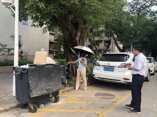 翠园中学反映景贝北小区垃圾桶摆放影响学校学生通行问题