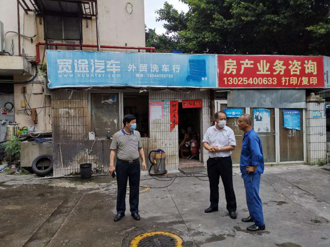 社区工作人员到外贸大院旁的小平房(危楼)进行安全检查