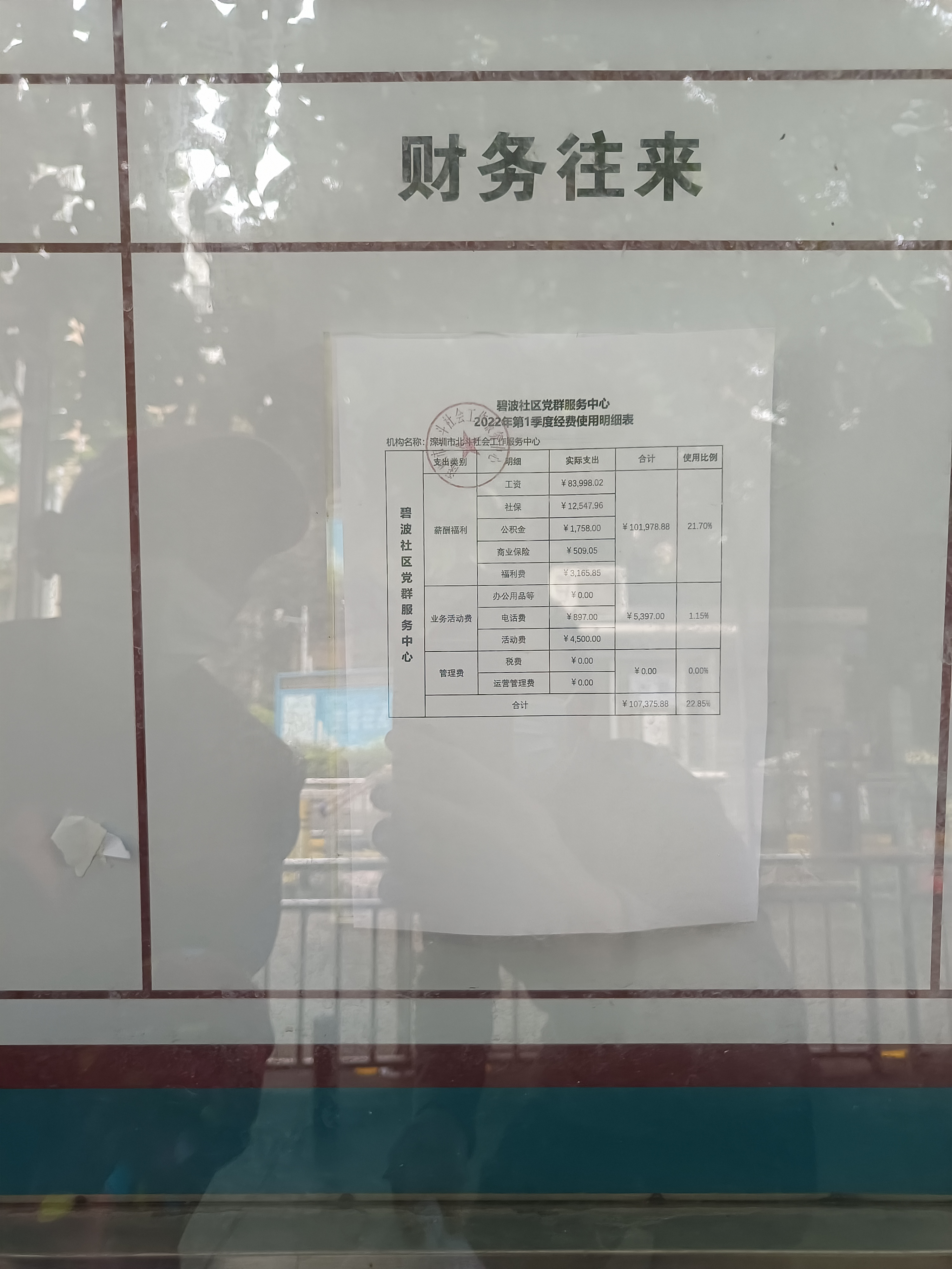 罗湖家园网讯:碧波社区党群服务中心2022年第一季度经费使用明细公示。